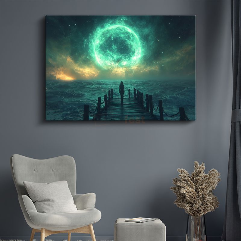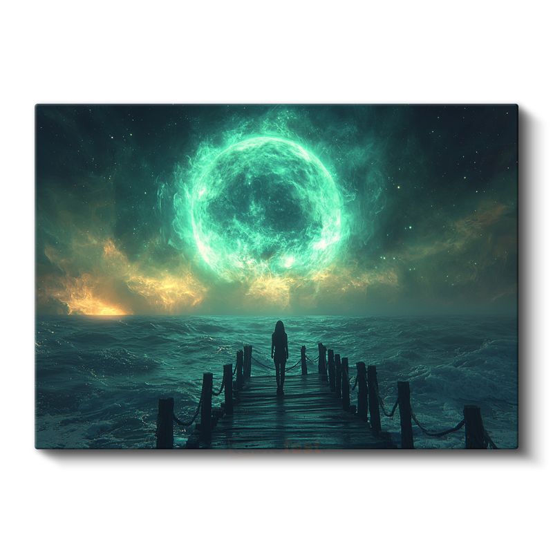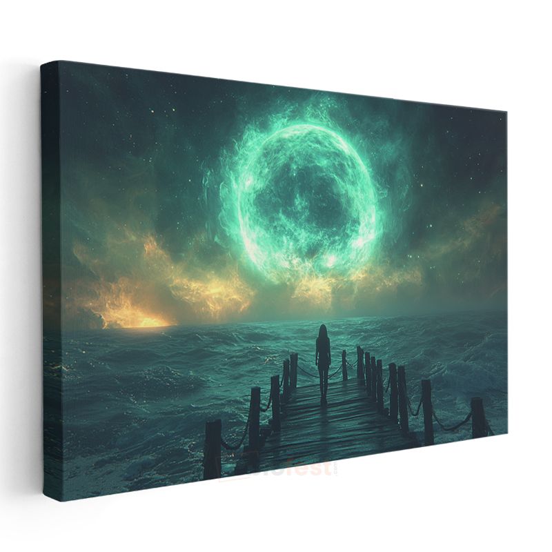 Yeşil Portal - Sonsuzluğa Açılan İskele ve Enerji Küresi Kanvas Tablo