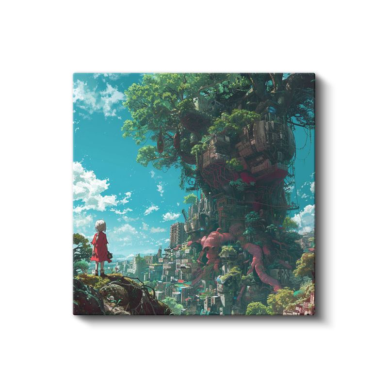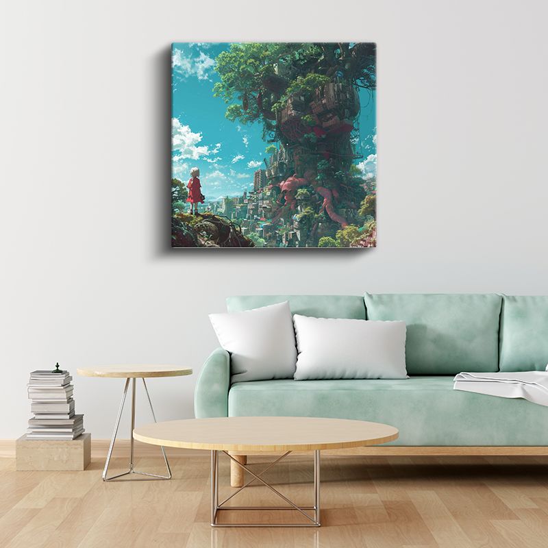 Yeşil Şehir - Kırmızı Elbise Anime Kanvas Tablo