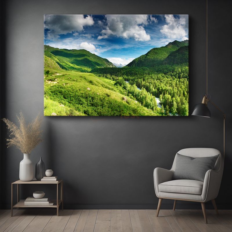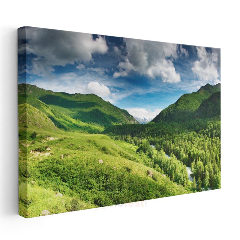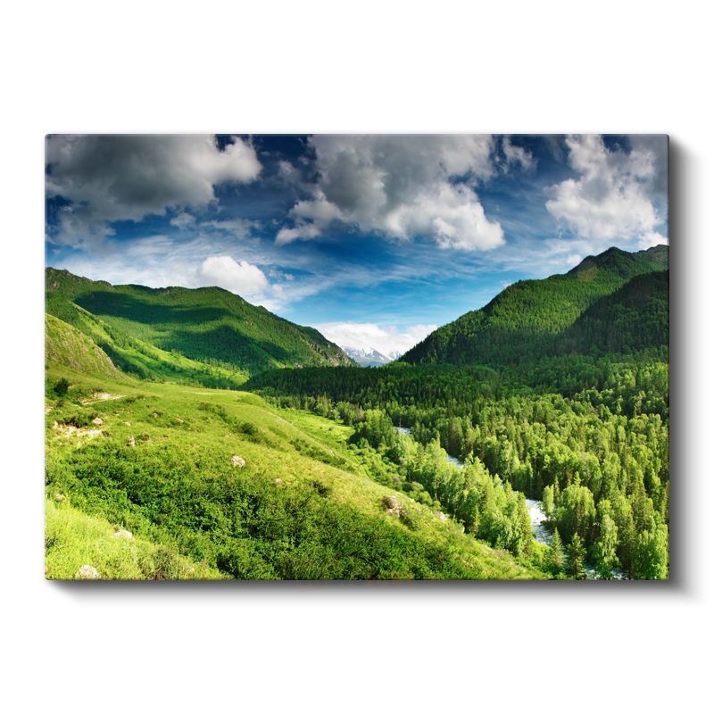 Yeşil Vadi - Ormanlar Arasında Akan Nehir Kanvas Tablo