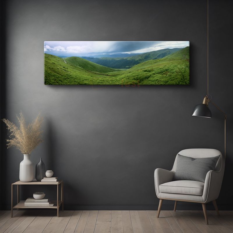 Yeşil Yamaçlar - Bulutlu Gökyüzü Altında Dağ Manzarası Kanvas Tablo