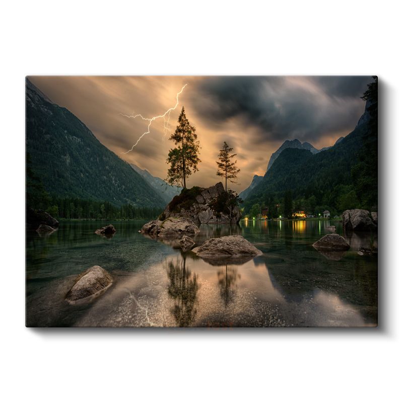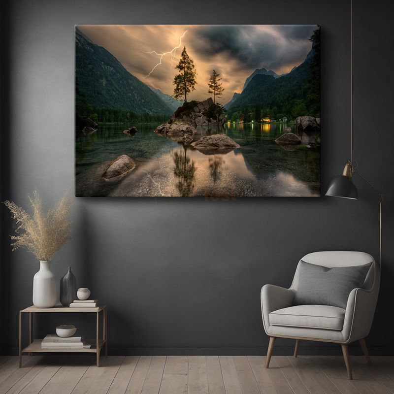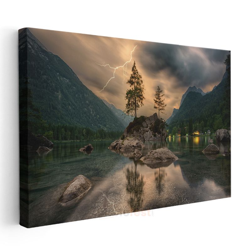 Yıldırım Çarpması - Göl Ortasındaki Kayalık Adacık Kanvas Tablo