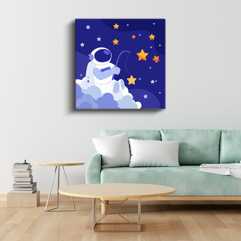 Yıldız Avcısı - Bulutlar Üzerinde Astronot Kanvas Tablo