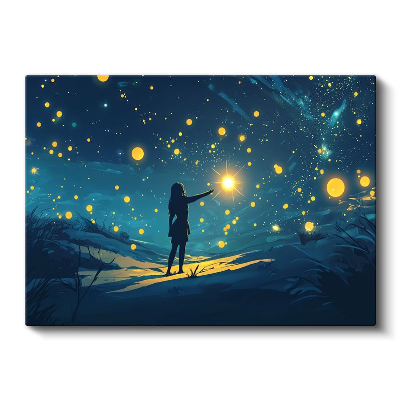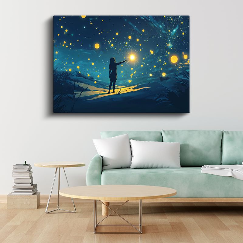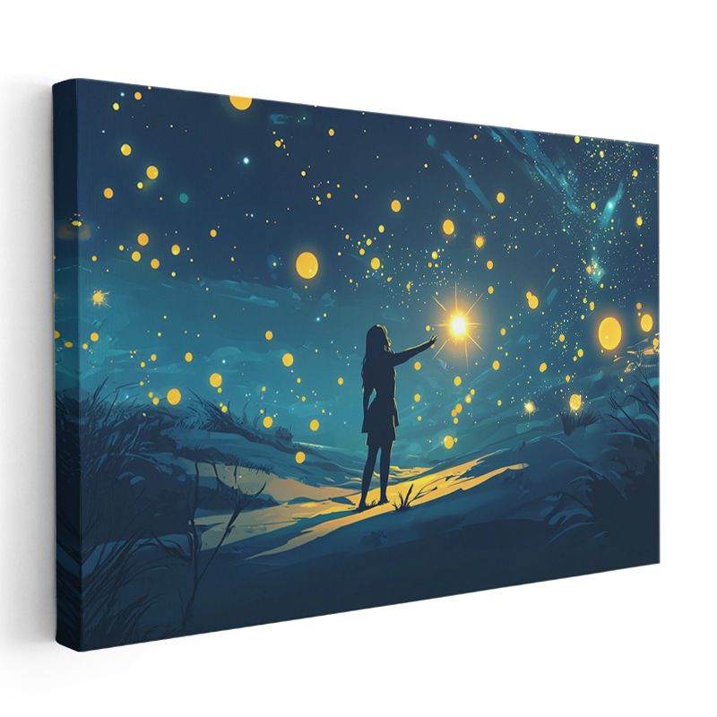 Yıldız Avcısı - Gece Gökyüzünde Işık Toplayan Silüet Kanvas Tablo