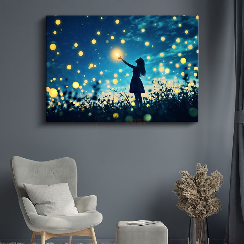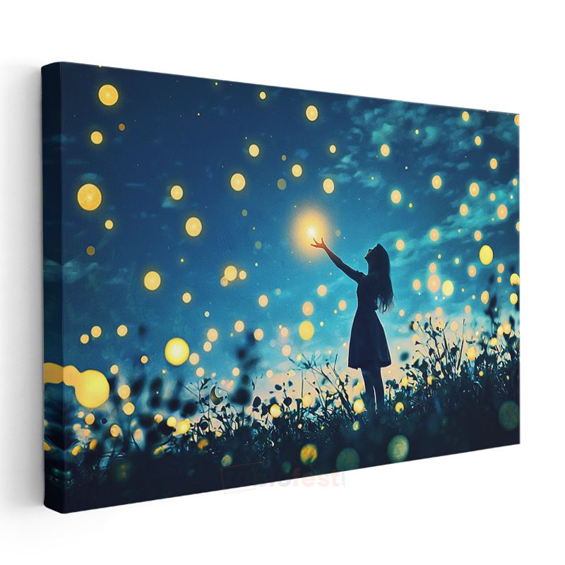 Yıldız Avcısı - Gecenin Işıklarını Toplayan Silüet Kanvas Tablo