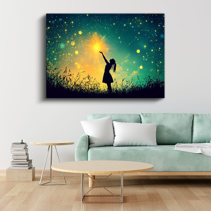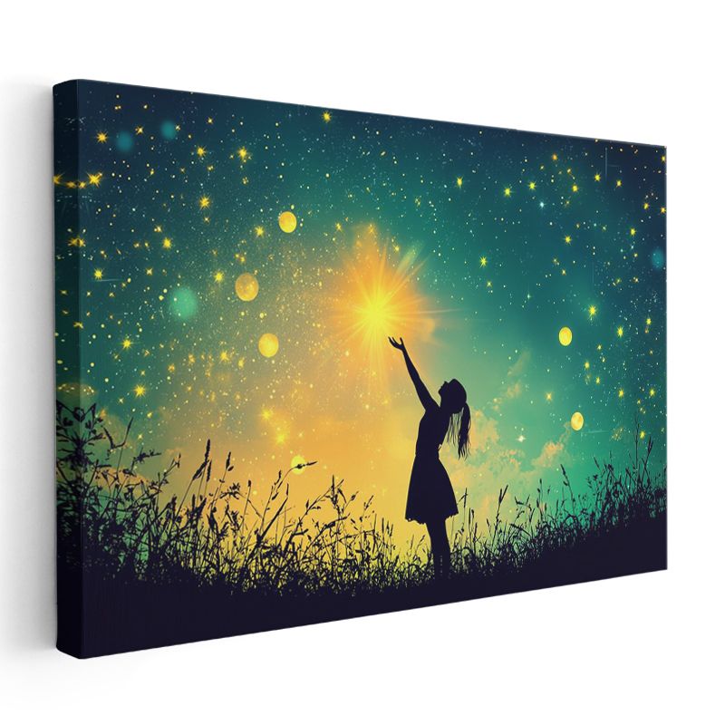 Yıldız Avcısı - Gecenin Parıltısını Yakalayan Figür Kanvas Tablo
