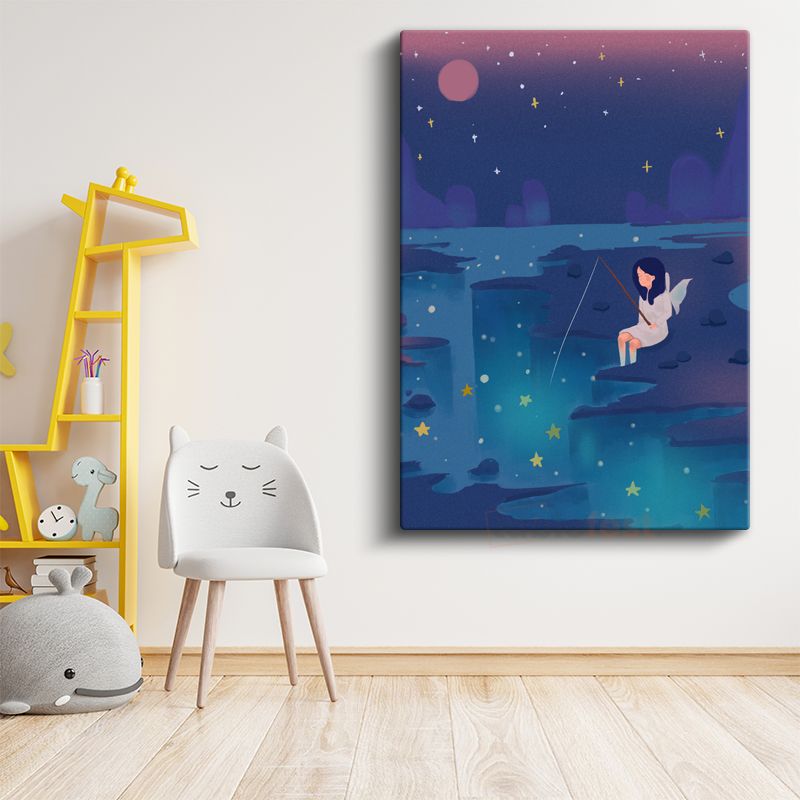 Yıldız Avcısı - Gökyüzünün Melek Kızı Kanvas Tablo
