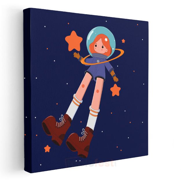 Yıldız Avcısı - Turuncu Botlu Astronot Kız Kanvas Tablo