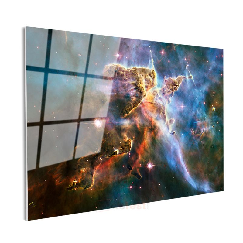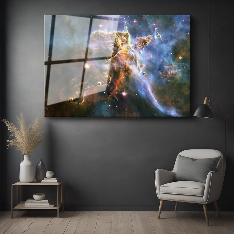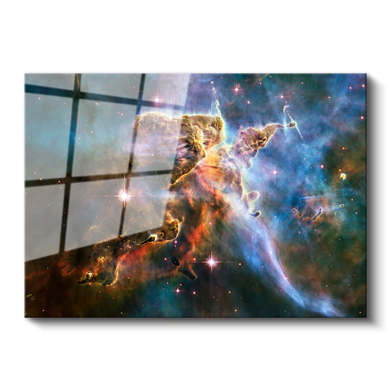 Yıldız Doğuşu - Renkli Kozmik Bulutlar ve Parlayan Nebula Cam Tablo