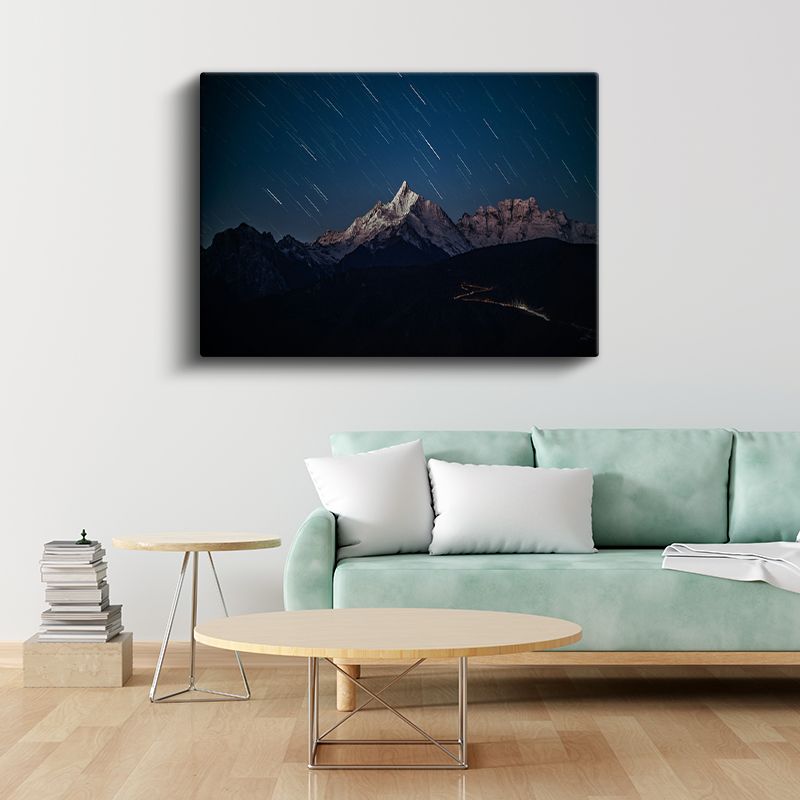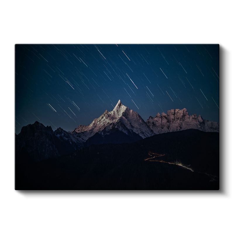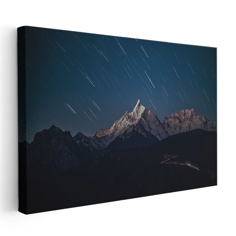 Yıldız İzleri - Gece Aydınlanan Dağ Zirvesi Kanvas Tablo