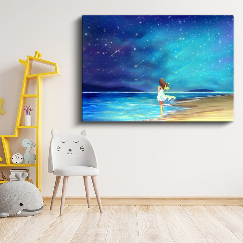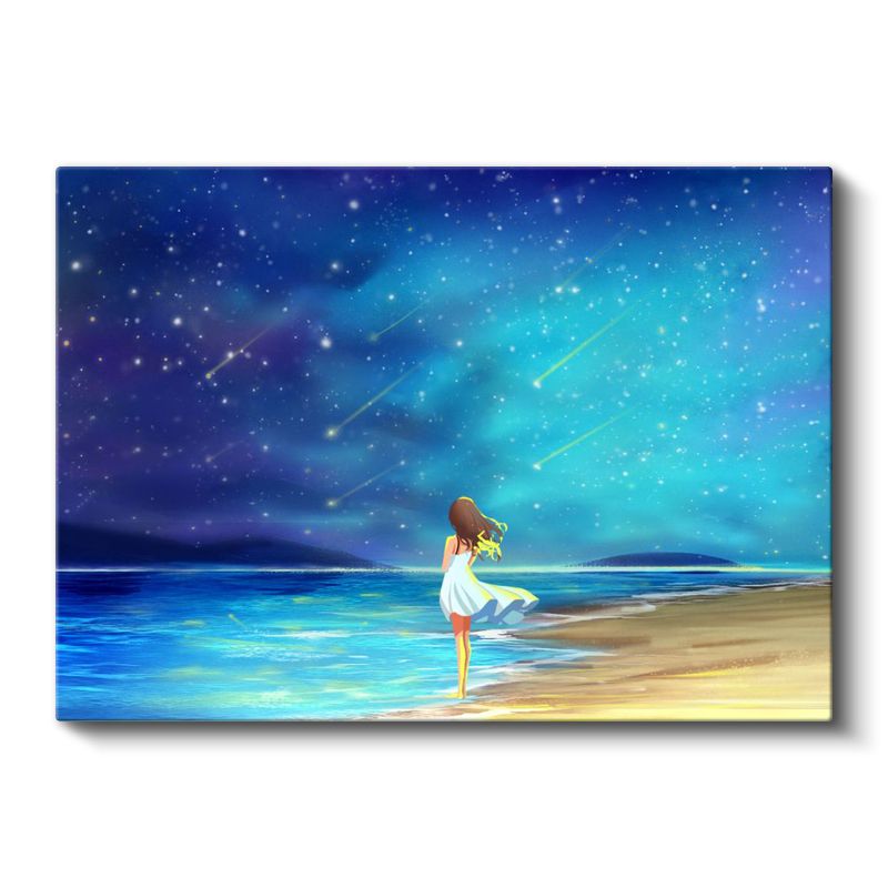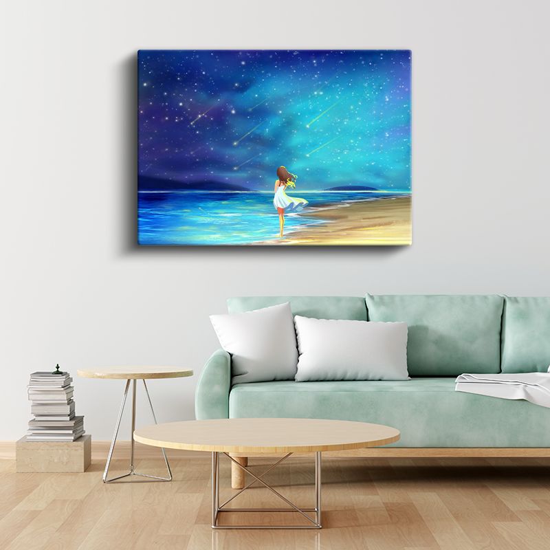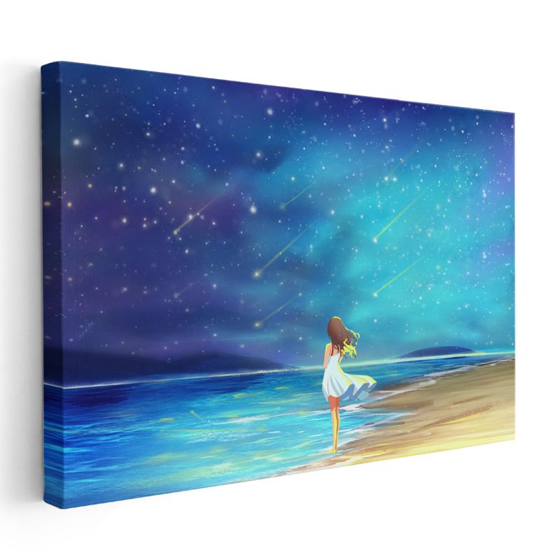 Yıldız Kayması - Sahilde Hayal Kuran Kız Kanvas Tablo