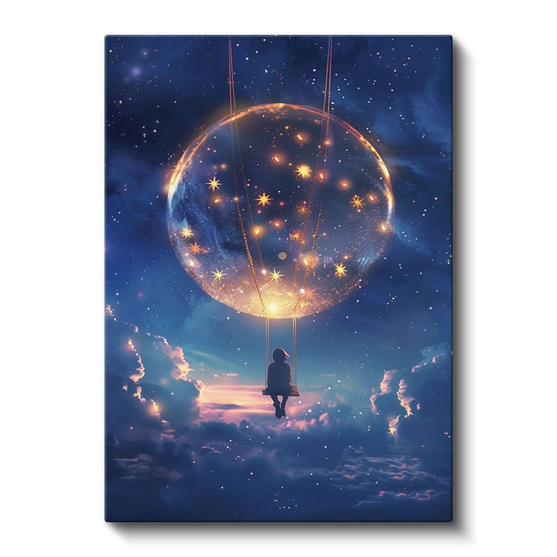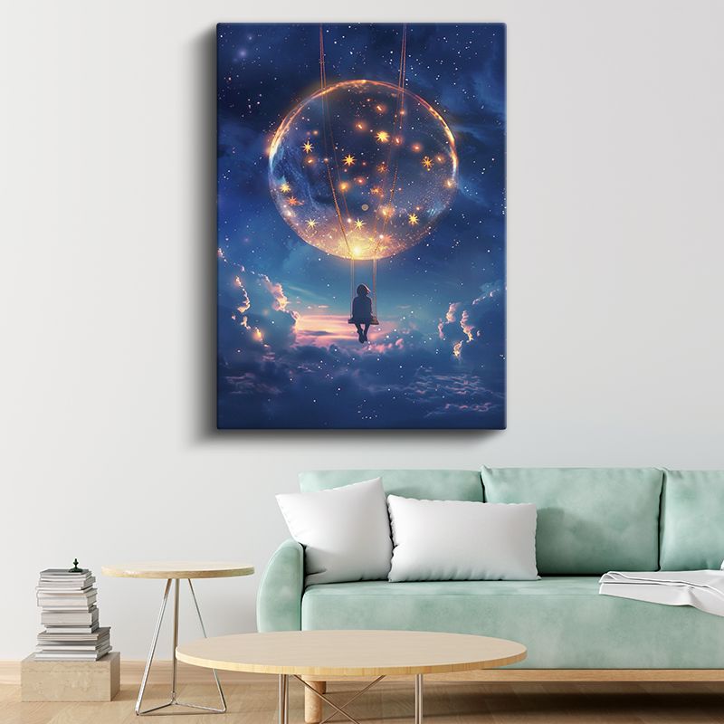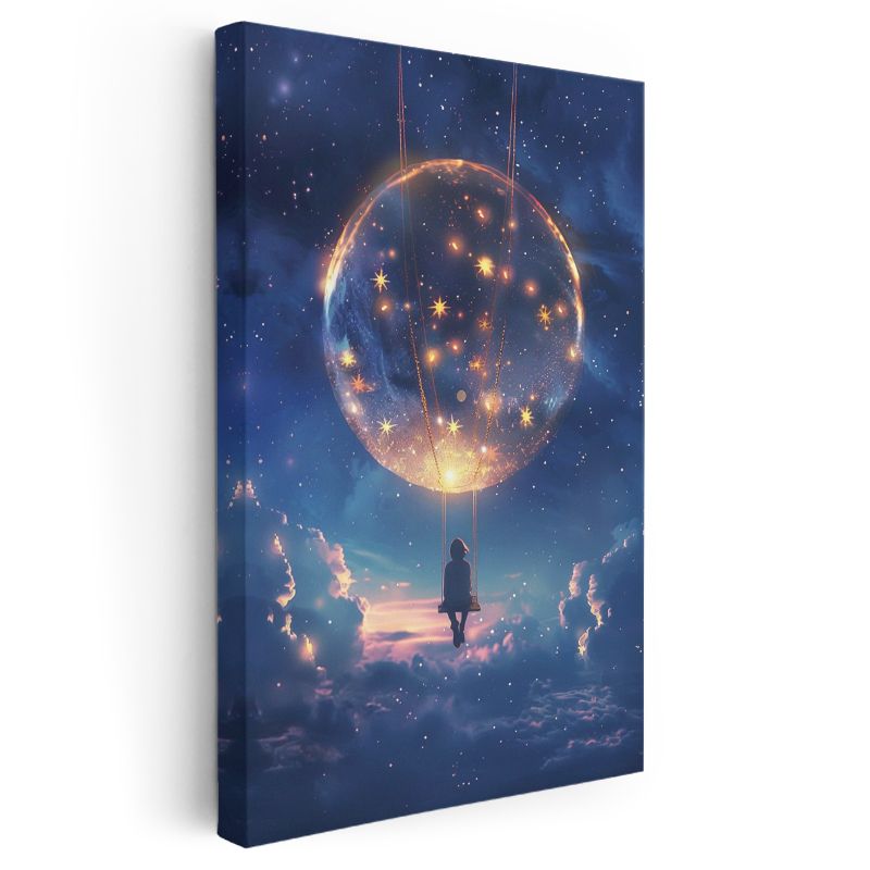Yıldız Salıncağı - Evrenin Kucağında Sallanan Silüet Kanvas Tablo