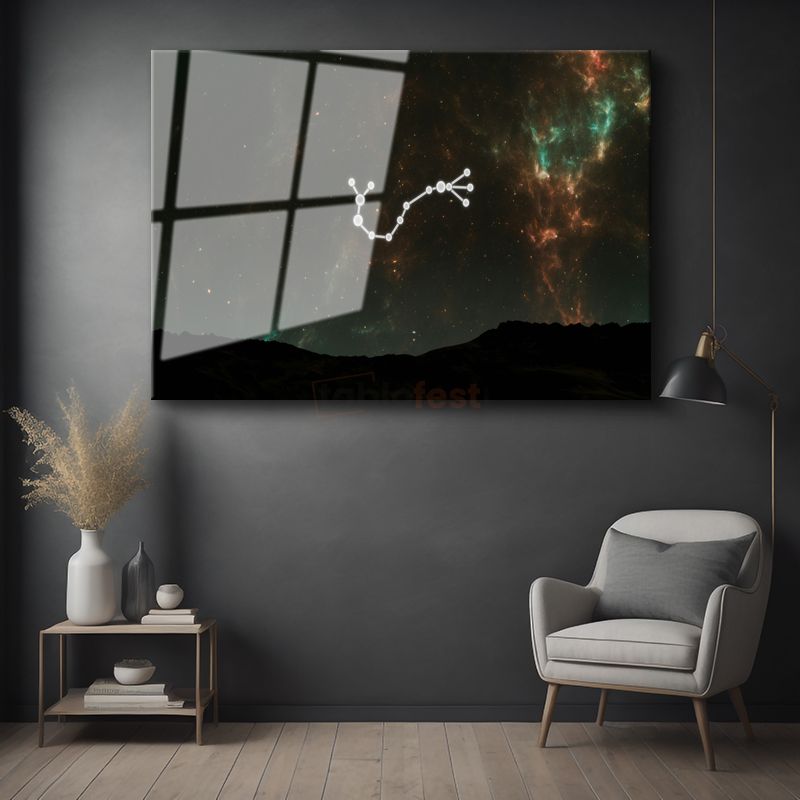 Yıldız Takımı - Gece Gökyüzünde Kozmik Işıltılar Cam Tablo