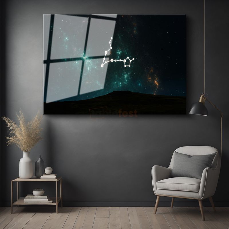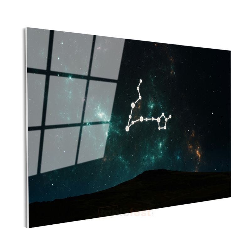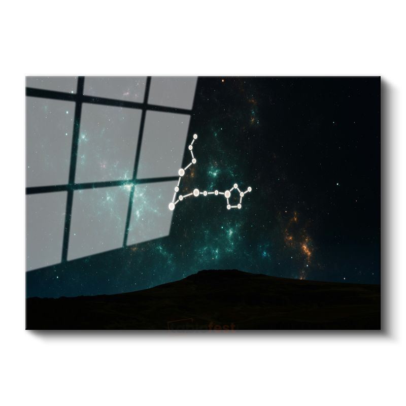 Yıldız Takımı - Gece Gökyüzünde Parlayan Kozmik Harita Cam Tablo