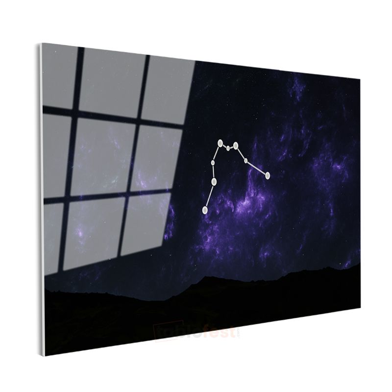 Yıldız Takımı - Mor Nebula İçinde Parlayan Gece Gökyüzü Cam Tablo