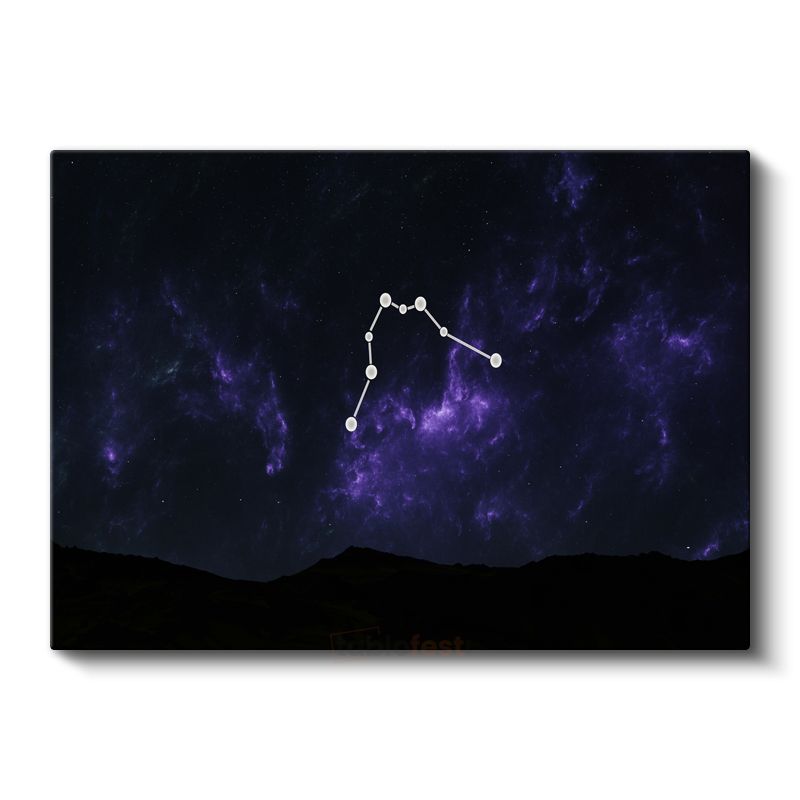 Yıldız Takımı - Mor Nebula İçinde Parlayan Gece Gökyüzü Kanvas Tablo