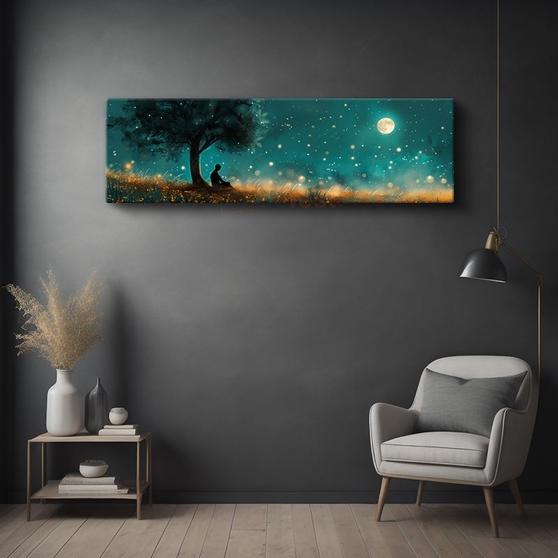 Yıldızlı Gece - Ağaç Altında Huzurlu Anlar Kanvas Tablo