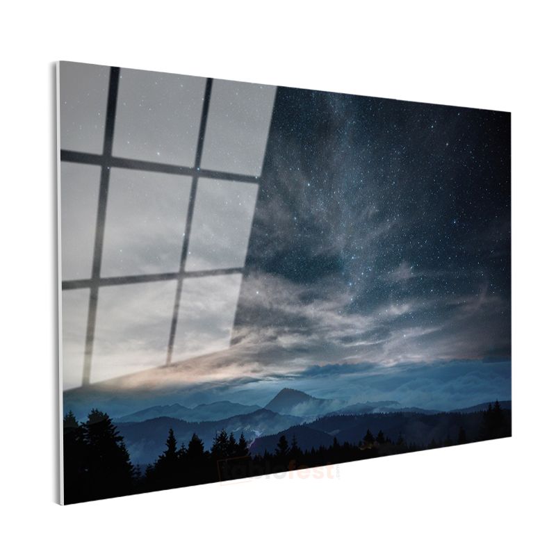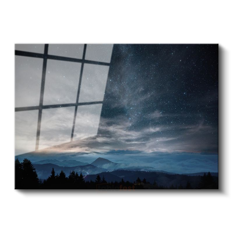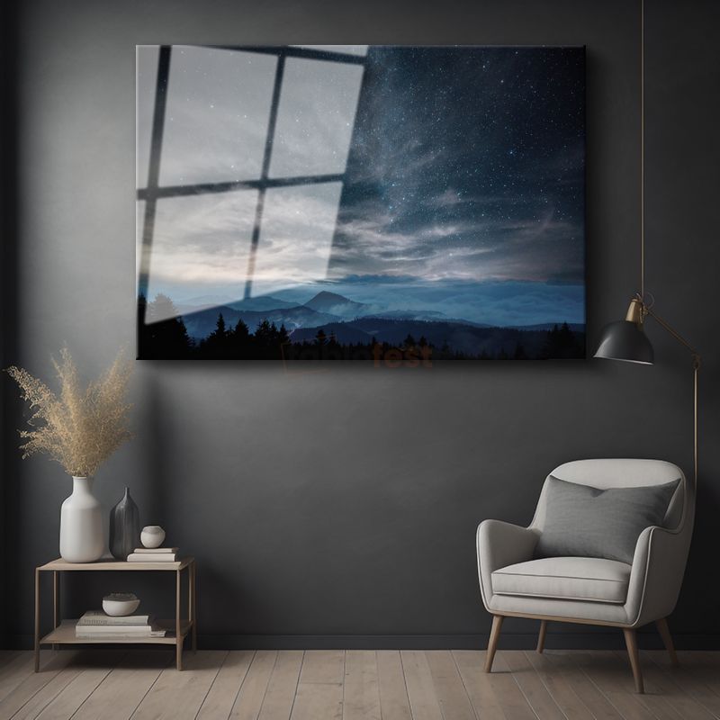Yıldızlı Gece - Dağların Üzerinde Samanyolu Cam Tablo
