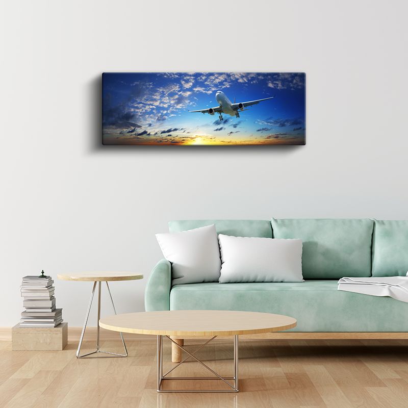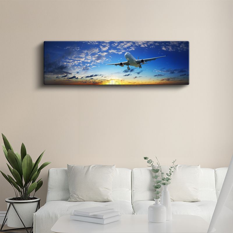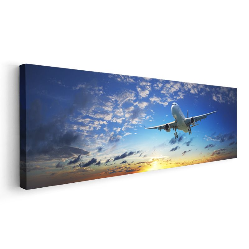 Yolcu Uçağı - Gün Batımı Gökyüzünde Kanvas Tablo