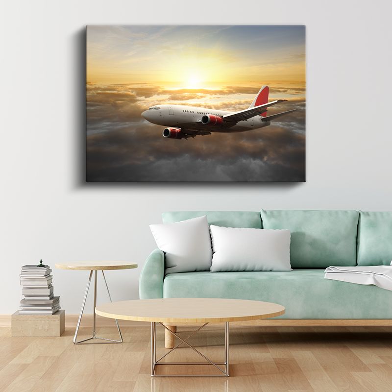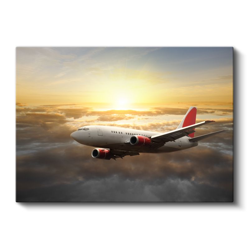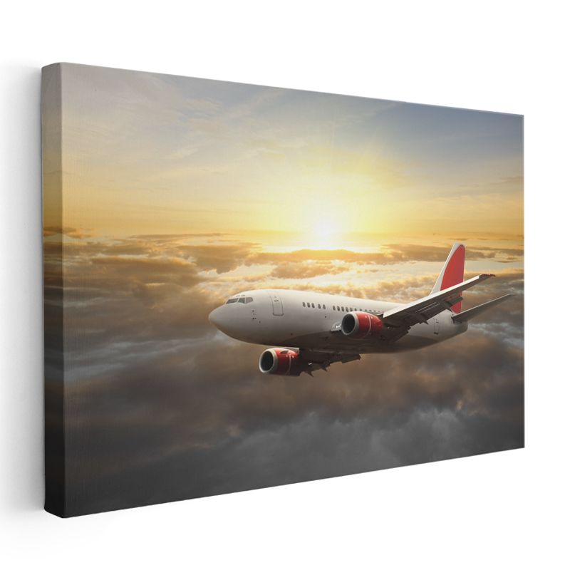 Yolcu Uçağı - Gün Batımında Bulutların Üzerinde Kanvas Tablo