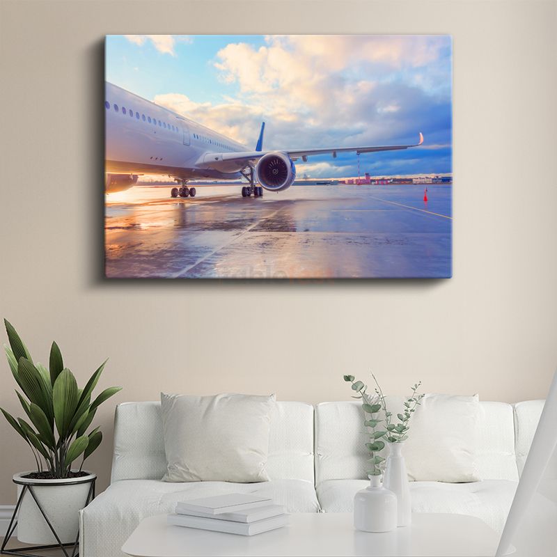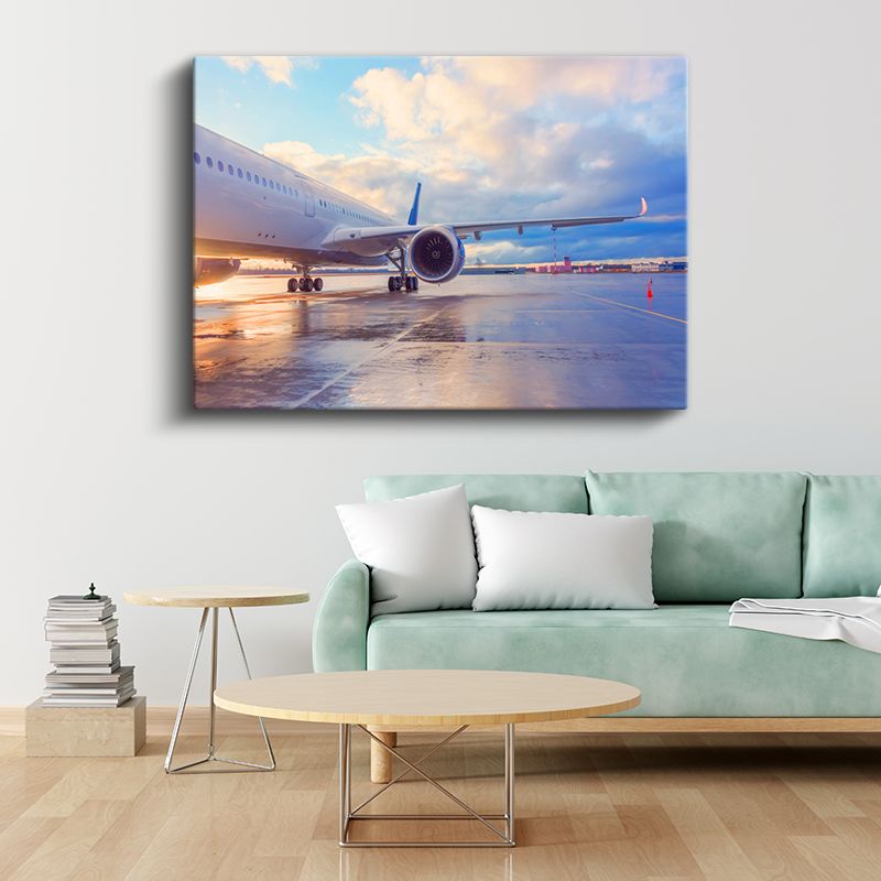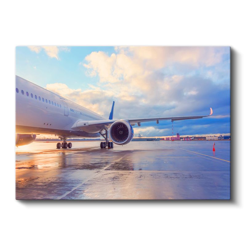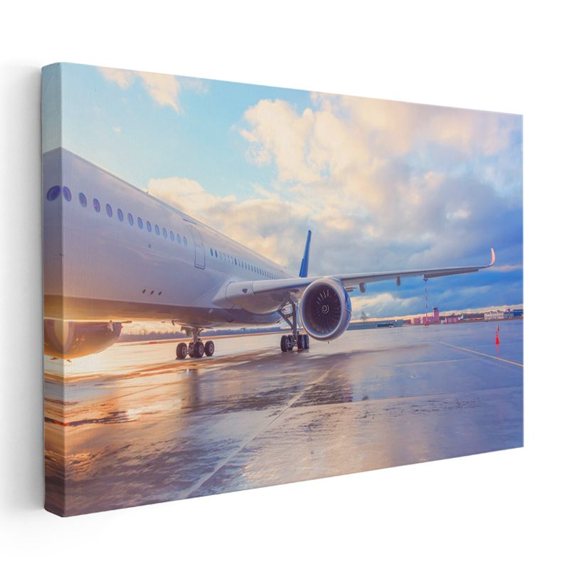 Yolcu Uçağı - Gün Batımında Pist Üzerinde Kanvas Tablo