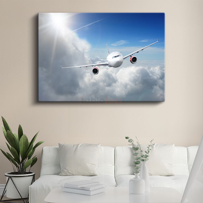 Yolcu Uçağı - Güneş Işığında Gökyüzü Yolculuğu Kanvas Tablo