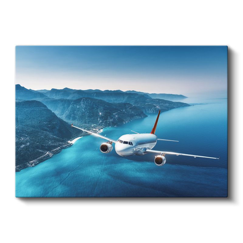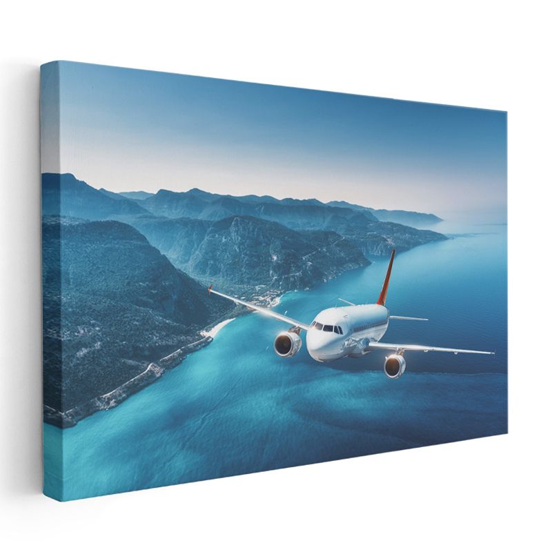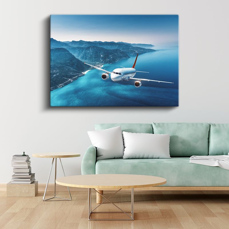 Yolcu Uçağı - Mavi Deniz Üzerinde Seyahat Kanvas Tablo