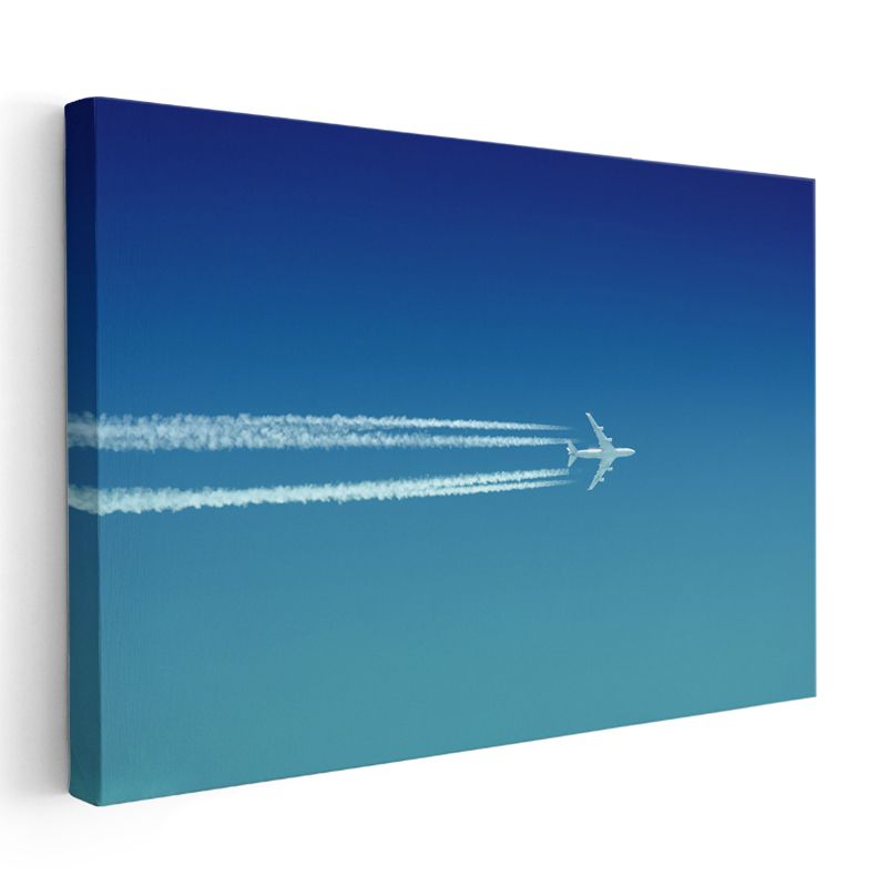 Yolcu Uçağı - Mavi Gökyüzünde İz Bırakan Beyaz Jet Kanvas Tablo
