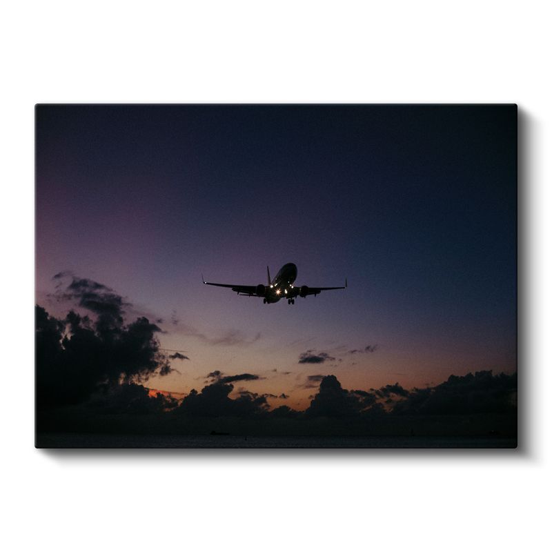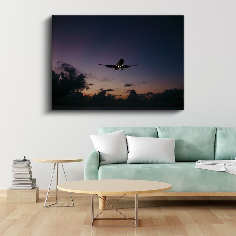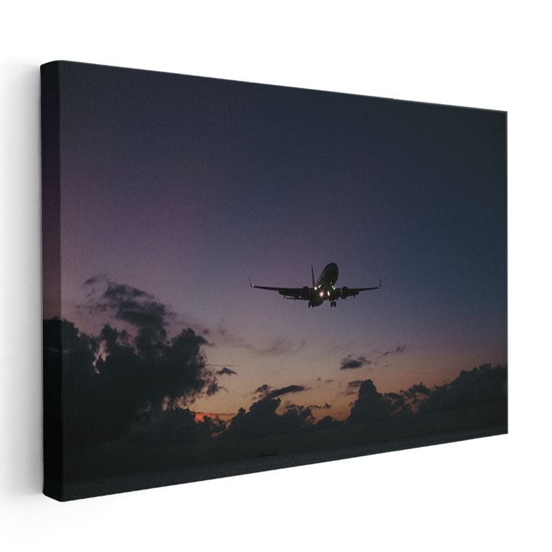 Yolcu Uçağı Silueti - Gün Batımında İniş Anı Kanvas Tablo