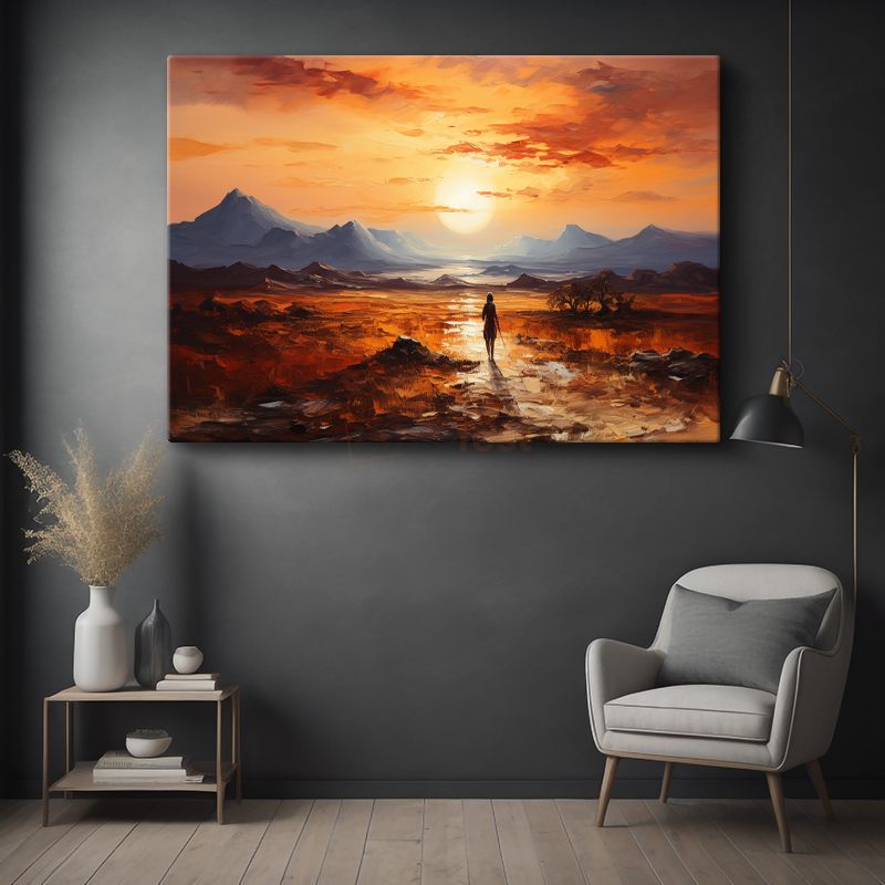 Yolculuk - Alev Rengi Gün Batımında Dağların Çağrısı Kanvas Tablo