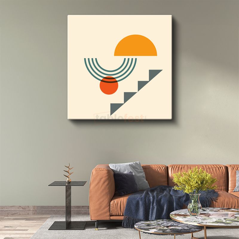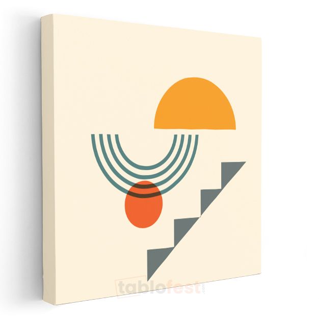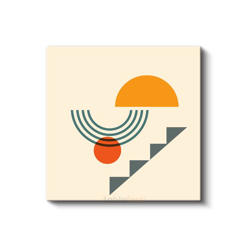 Yükseliş - Turuncu Güneş ve Merdiven Deseni Kanvas Tablo