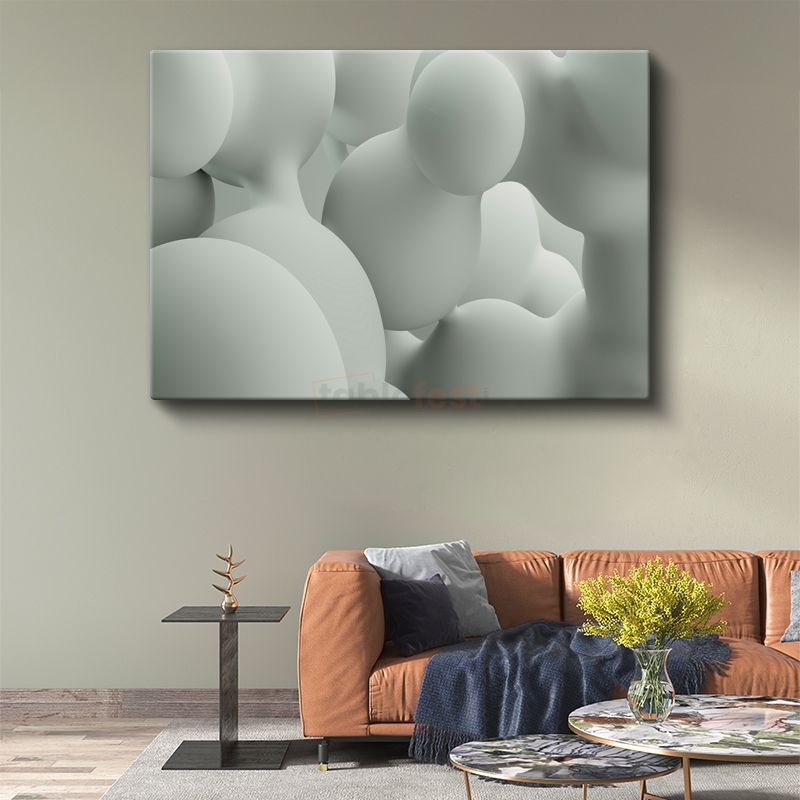 Yumuşak Küreler - Minimalist Beyaz Heykel Sanatı Kanvas Tablo