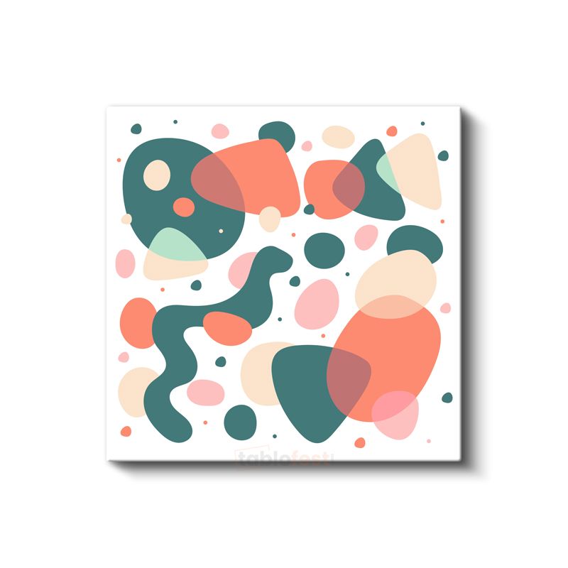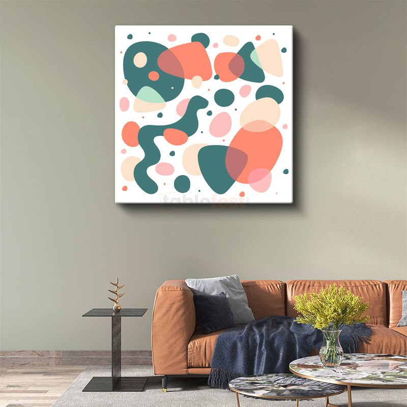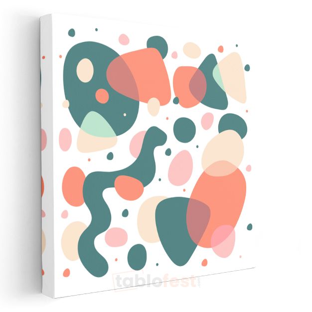 Yumuşak Renkli Organik Formlar - Pastel Yeşil Mercan Transparan Şekiller Kanvas Tablo