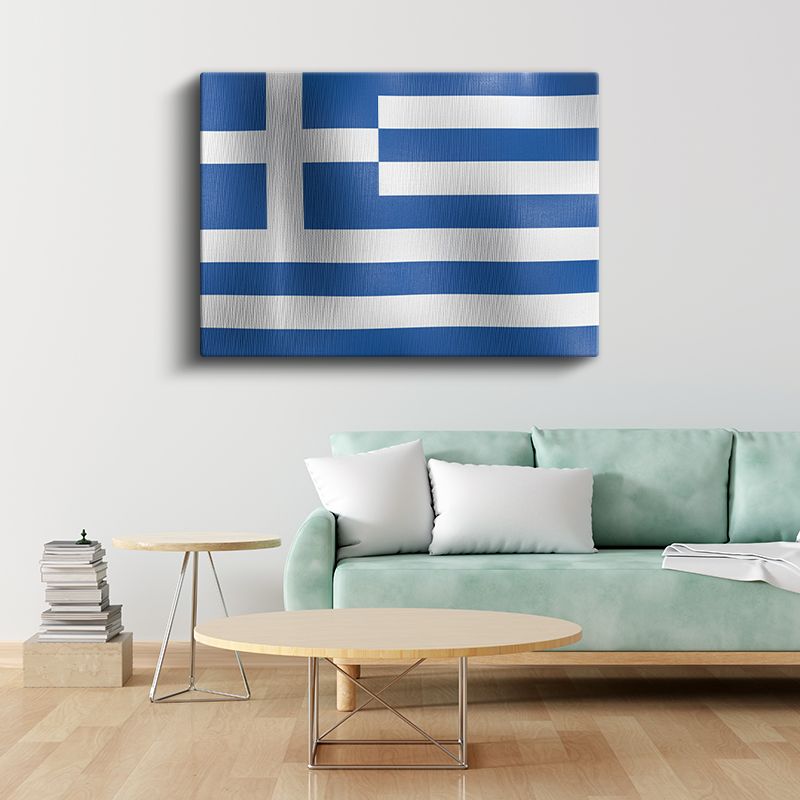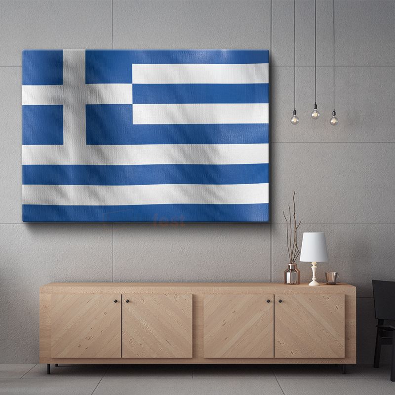 Yunanistan Bayrağı - Dalgalı Görünüm Kanvas Tablo