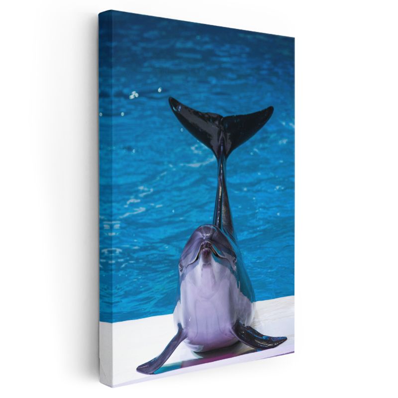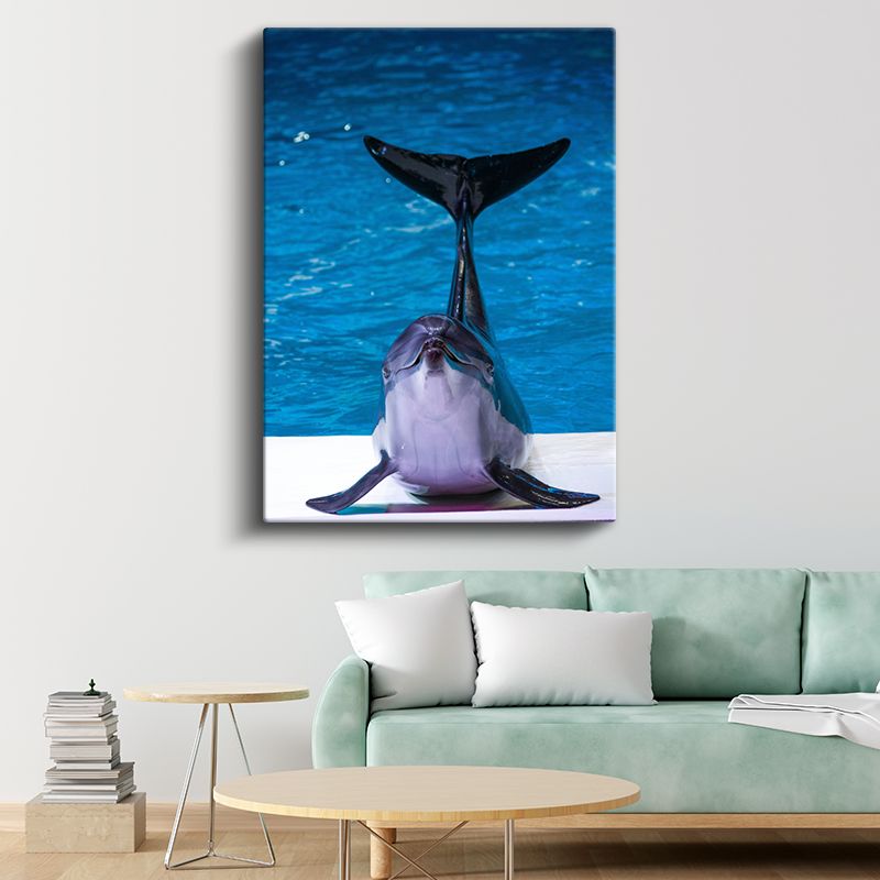 Yunus - Mavi Suda Gülümseyen Deniz Memelisi Kanvas Tablo