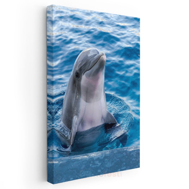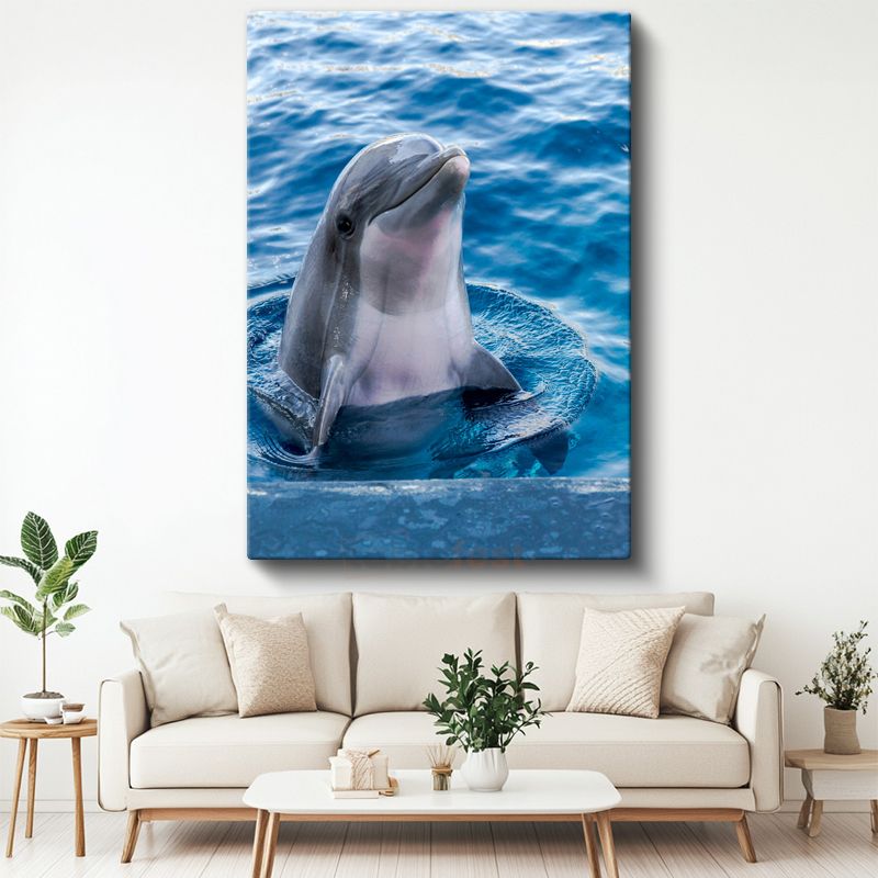 Yunus Portresi - Mavi Suda Gülümseyen Zeki Memeli Kanvas Tablo