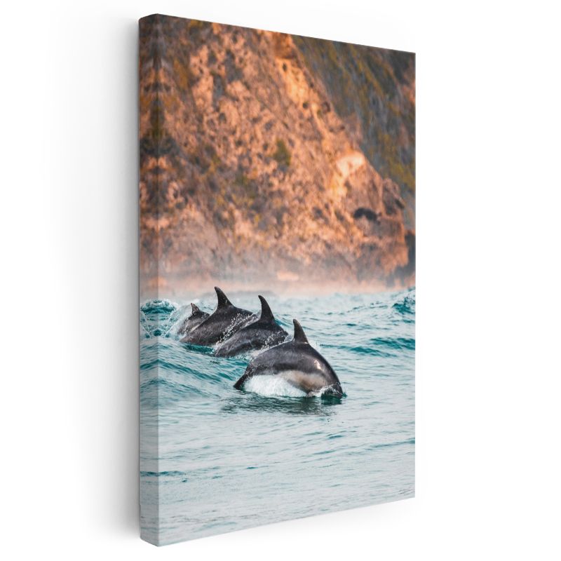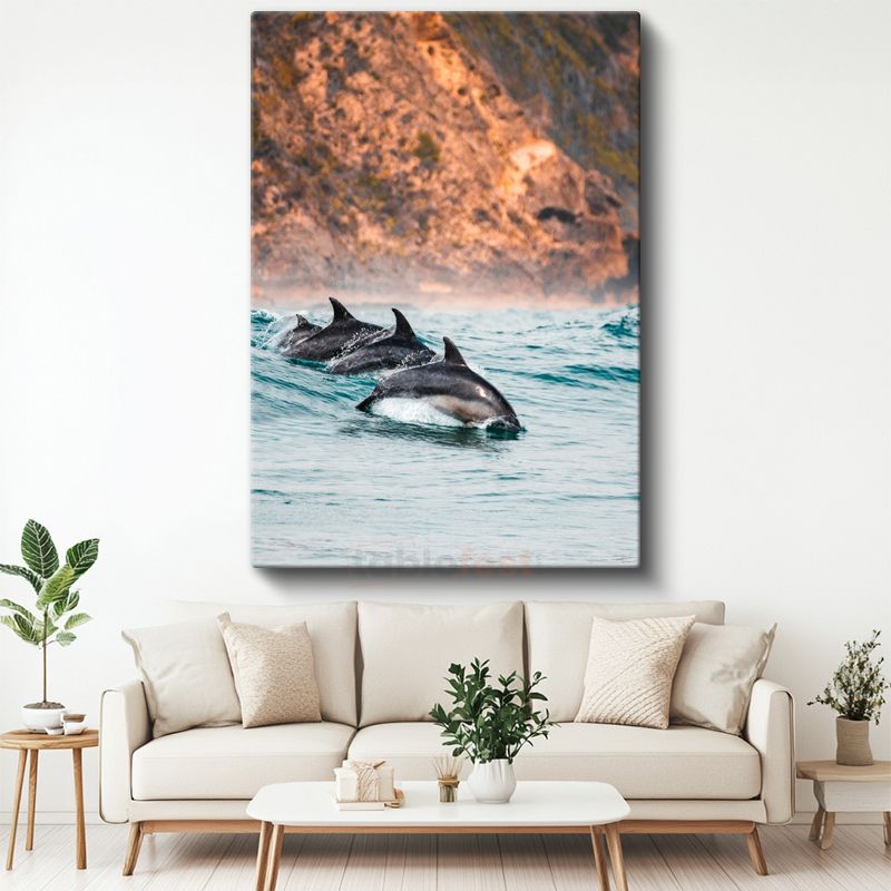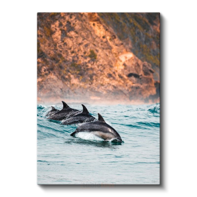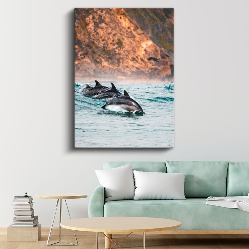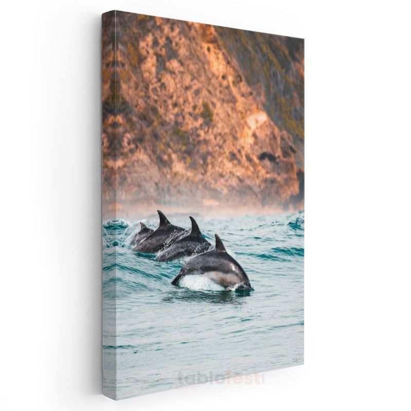 Yunus Sürüsü - Turkuaz Sularda Sıçrayan Neşeli Grup Kanvas Tablo