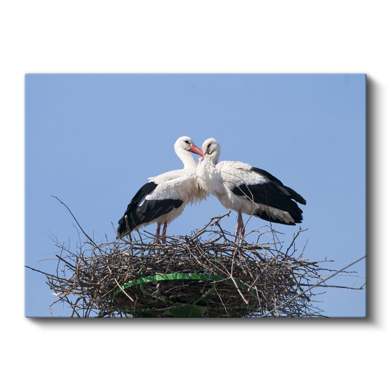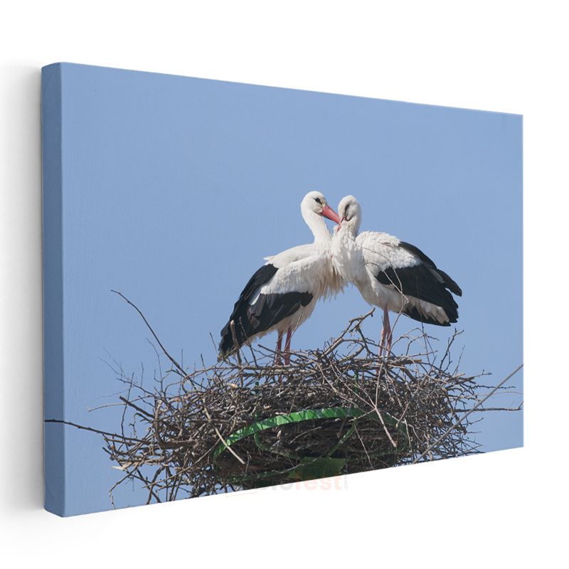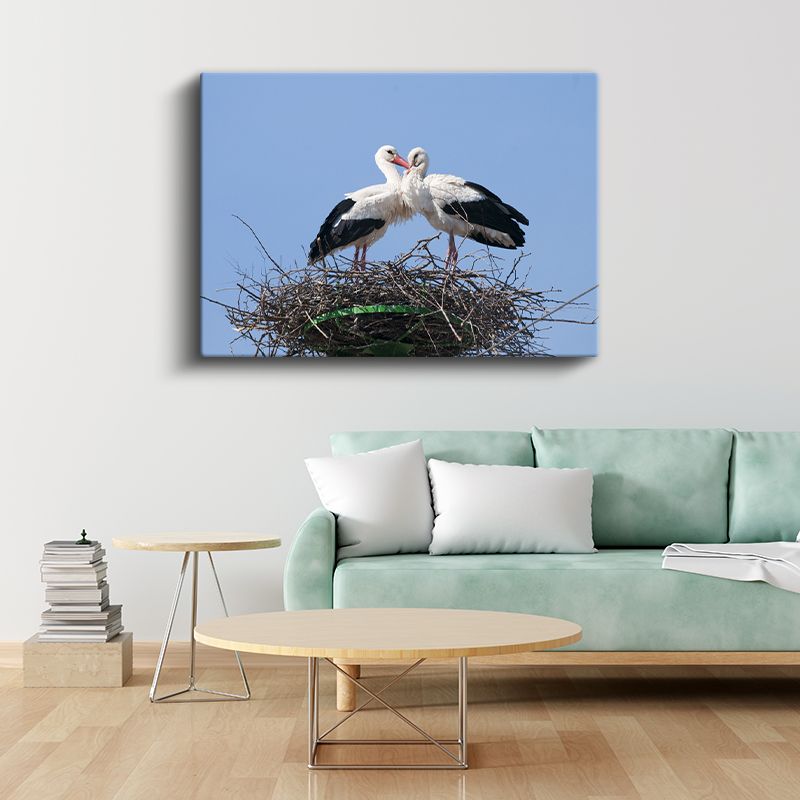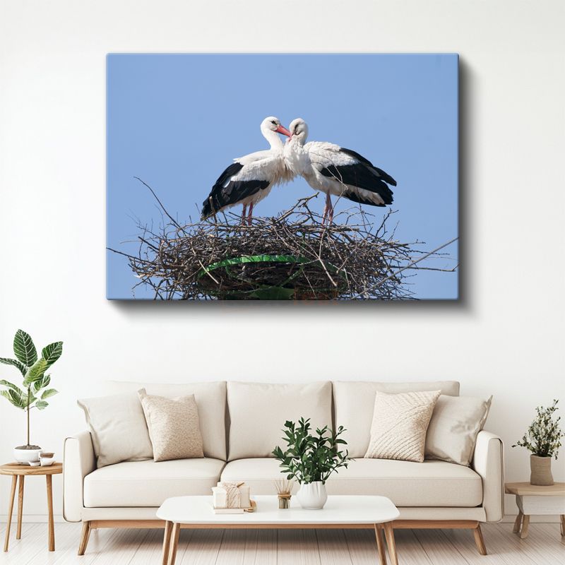 Yuva Sakinleri - Sevgi Dolu Leylek Çifti Kanvas Tablo