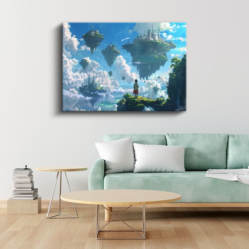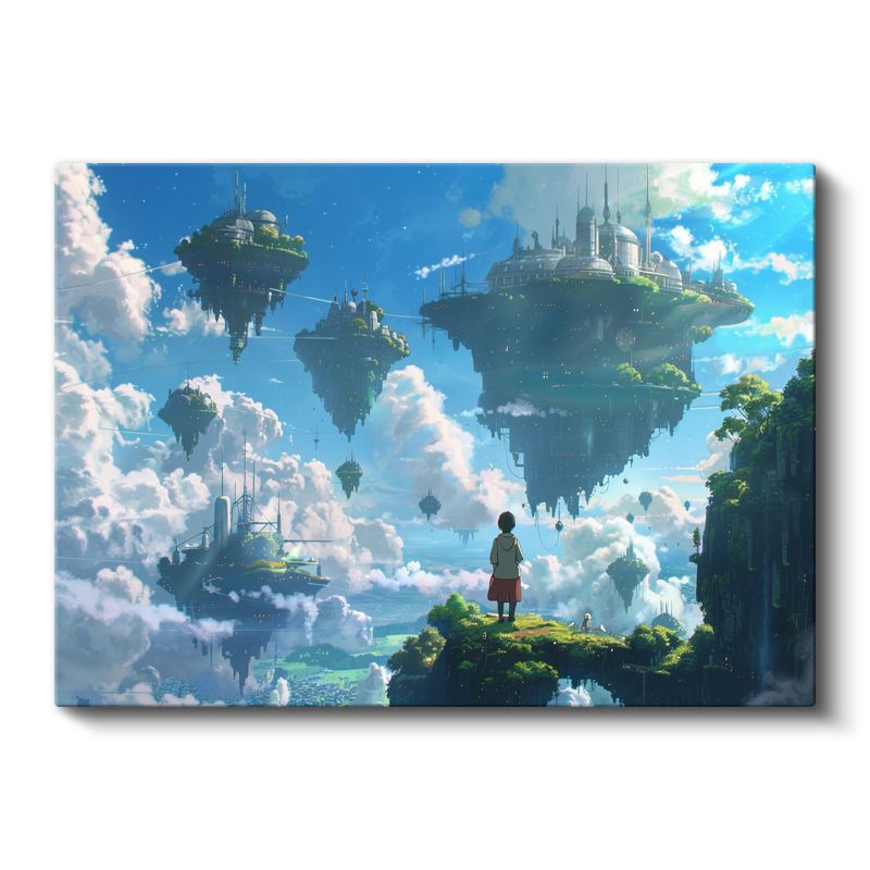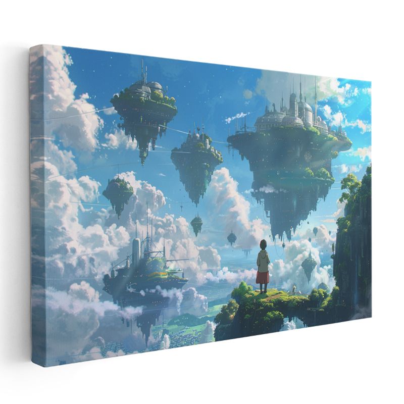 Yüzen Adalar - Mavi Gökyüzü Anime Kanvas Tablo