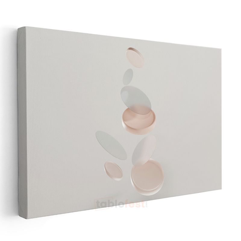 Yüzen Diskler - Pembe Gri Tonlarında Minimalist Geometrik Kompozisyon Kanvas Tablo