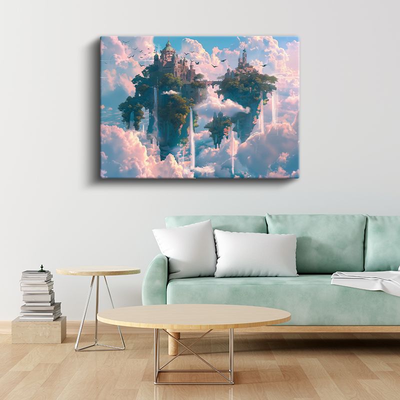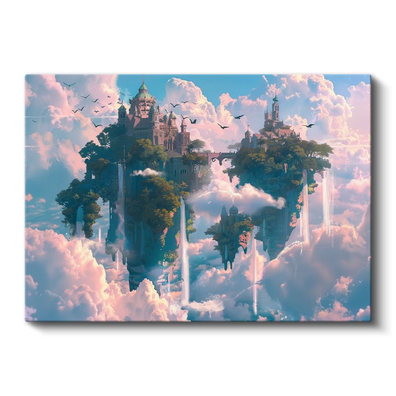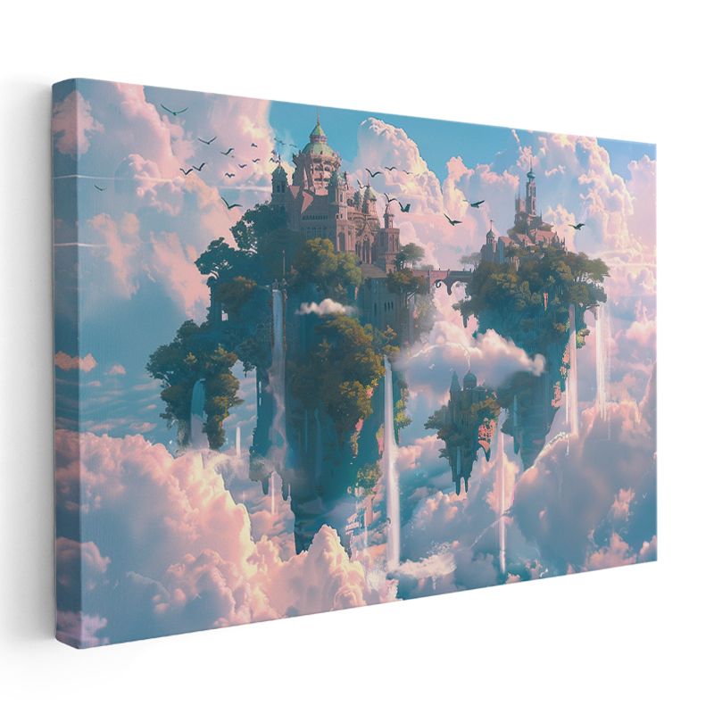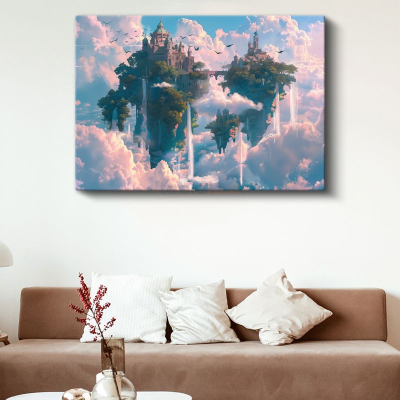 Yüzen Saraylar - Pembe Bulutlar Anime Kanvas Tablo