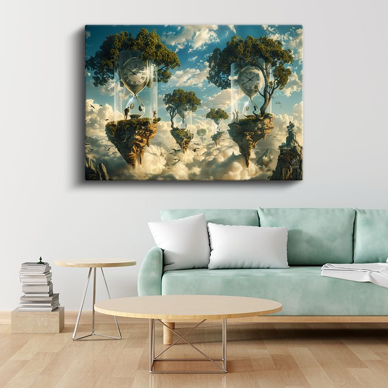 Zaman Adaları - Havada Asılı Kum Saatleri Kanvas Tablo