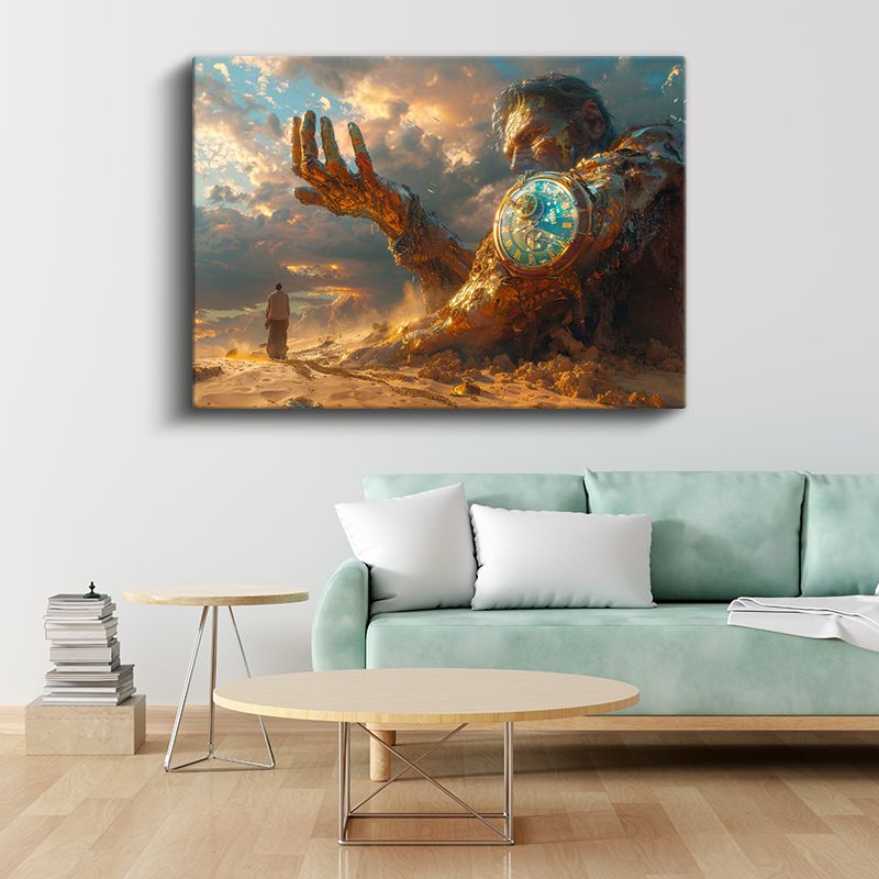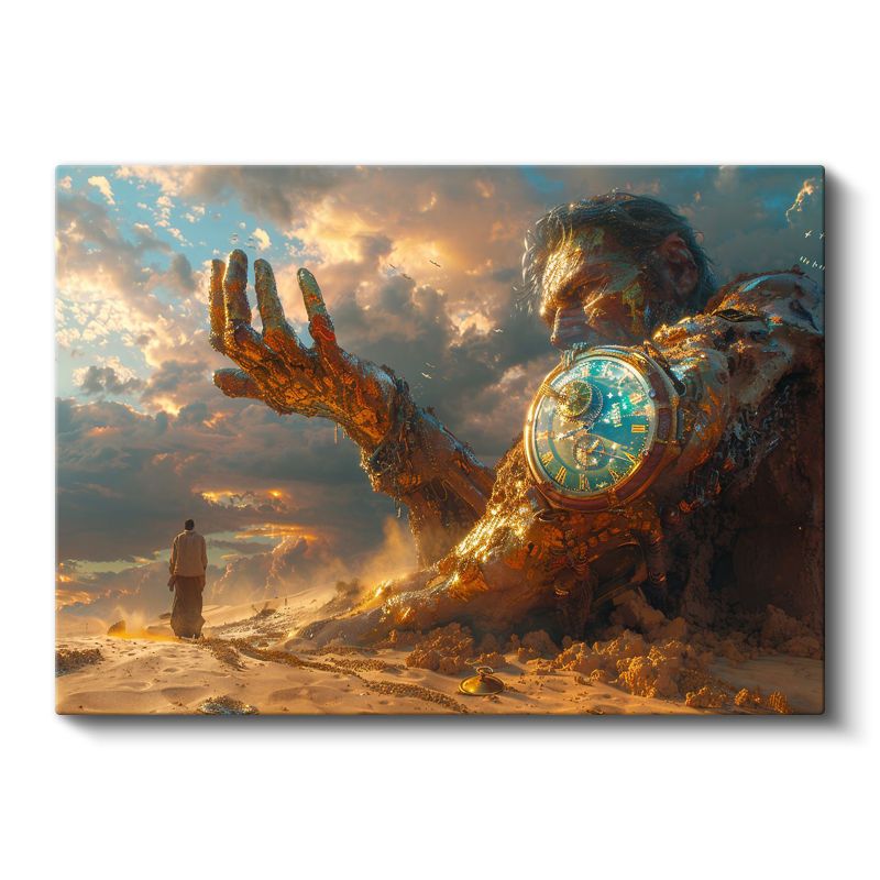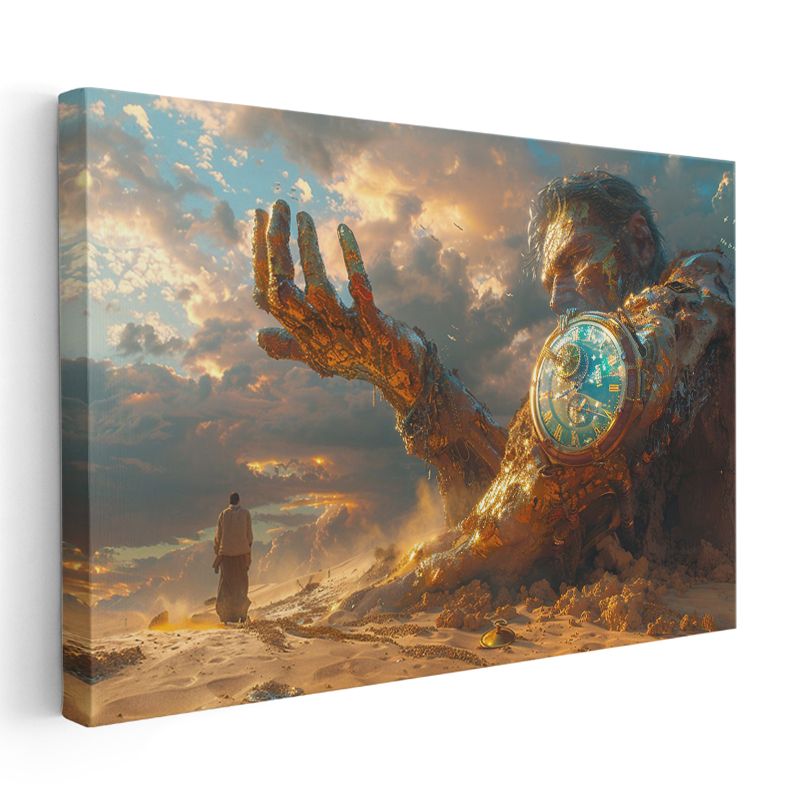 Zamanın Bekçisi - Çöldeki Devasa Saat Figürü Kanvas Tablo
