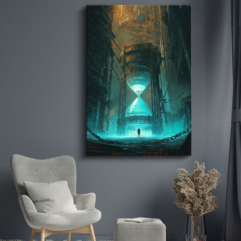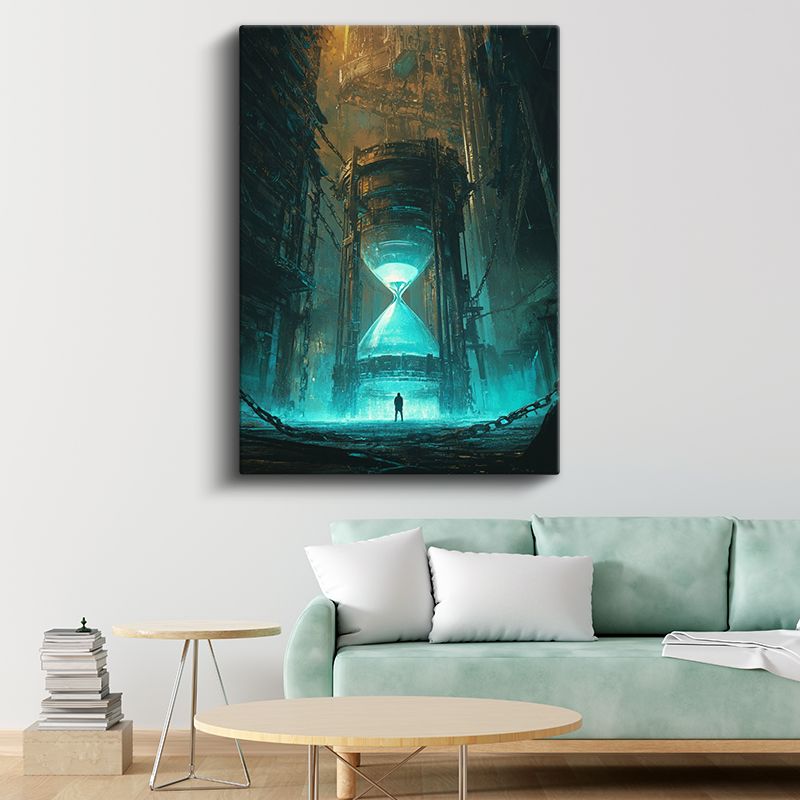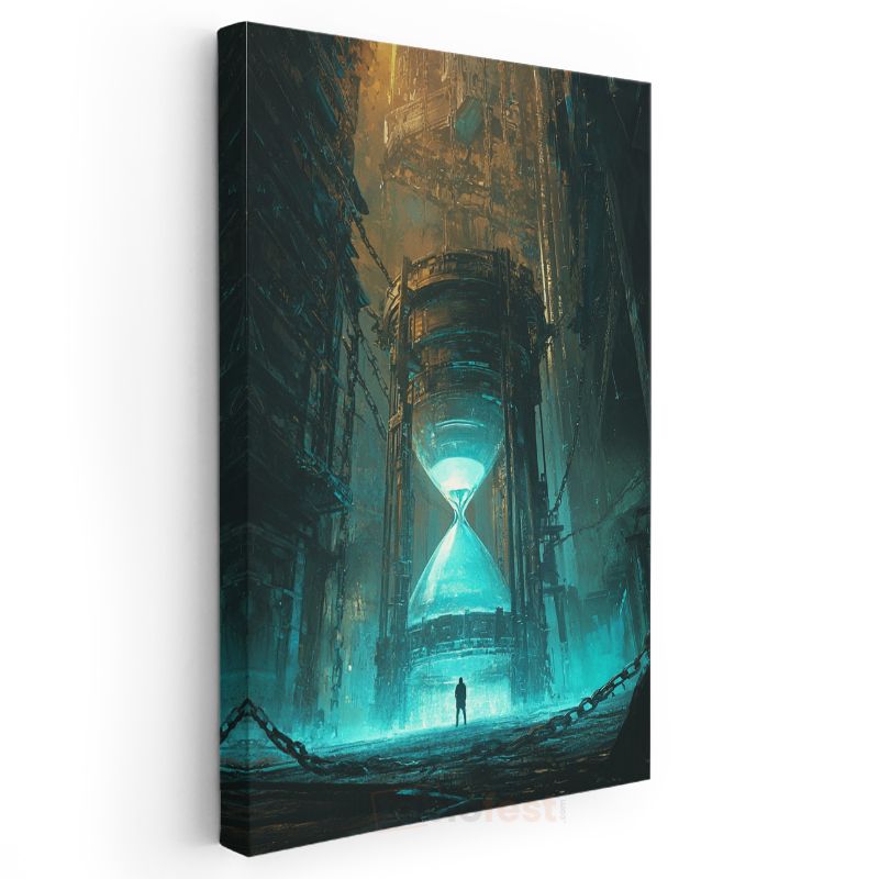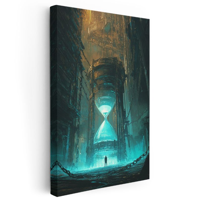 Zamanın Kalesi - Devasa Kum Saati Karşısında Küçülen İnsan Kanvas Tablo