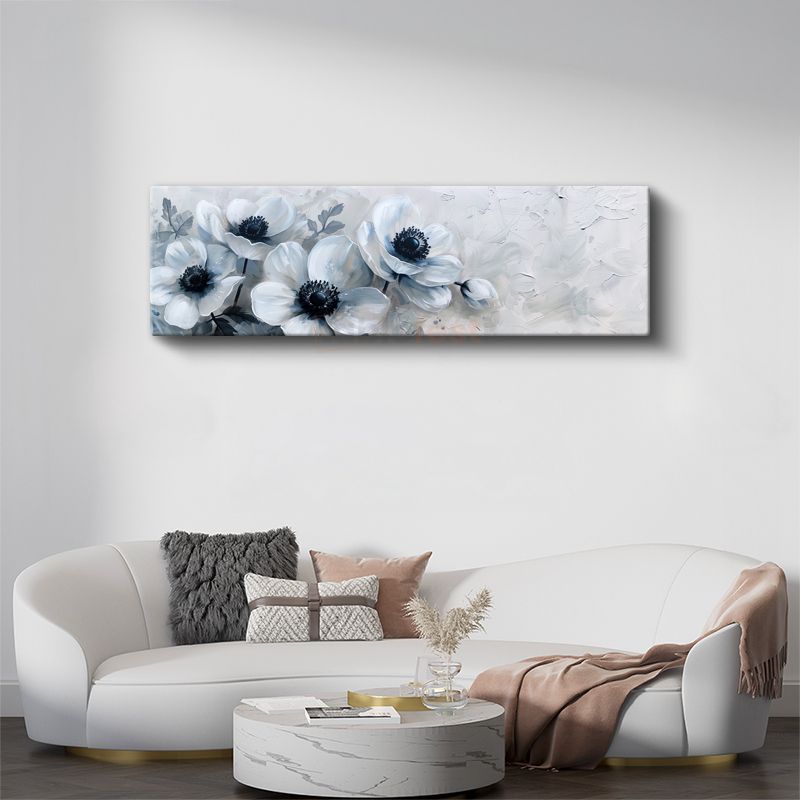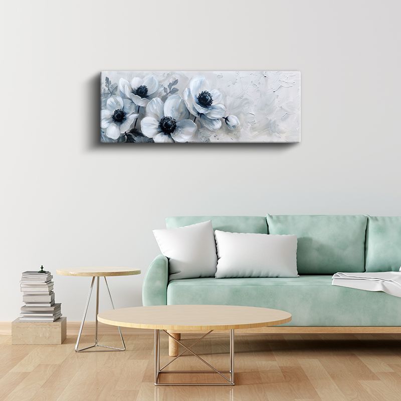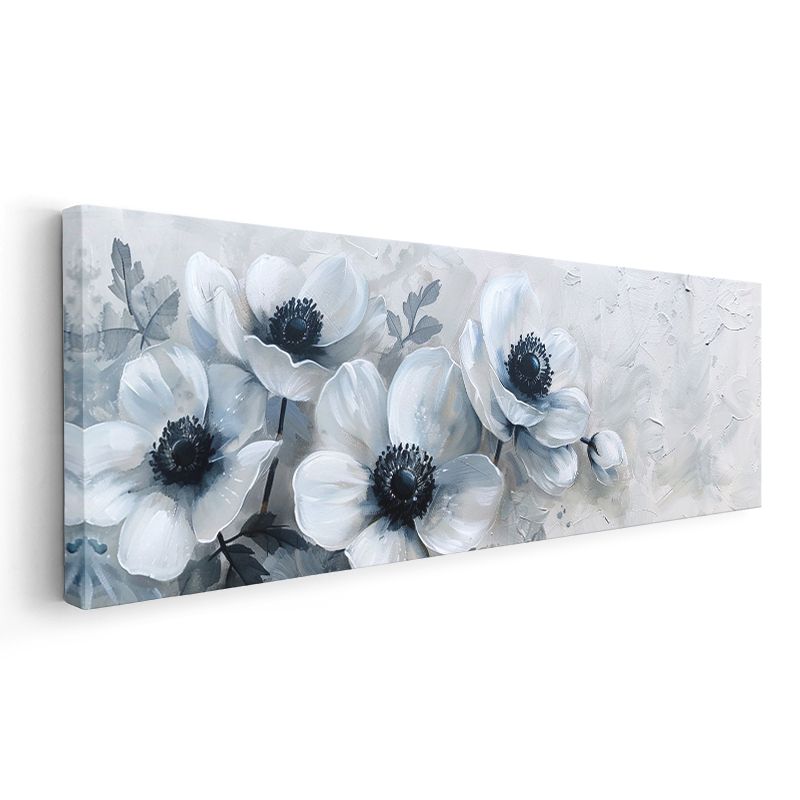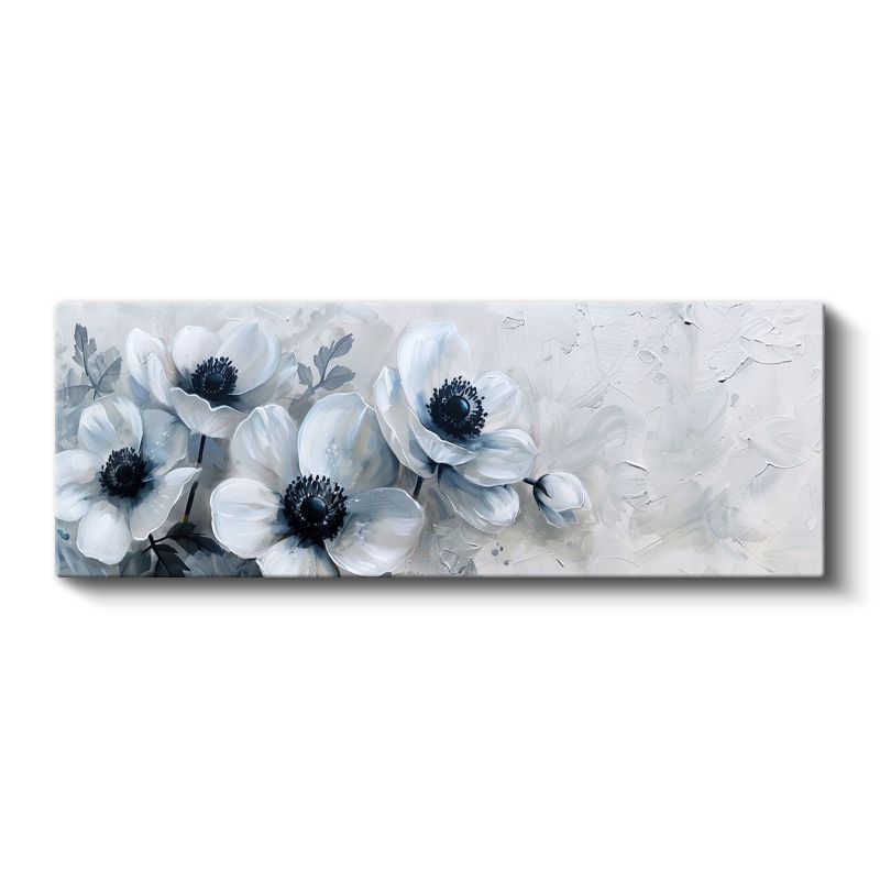 Zarif Anemonlar - Monokrom Tarzda Siyah Merkezli Çiçek Serisi Kanvas Tablo