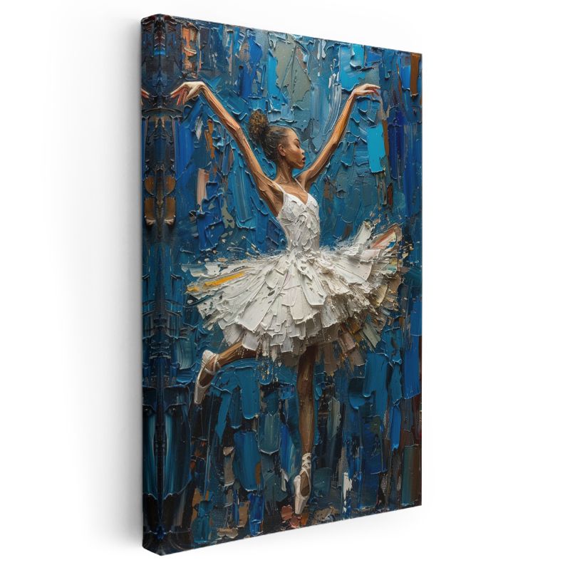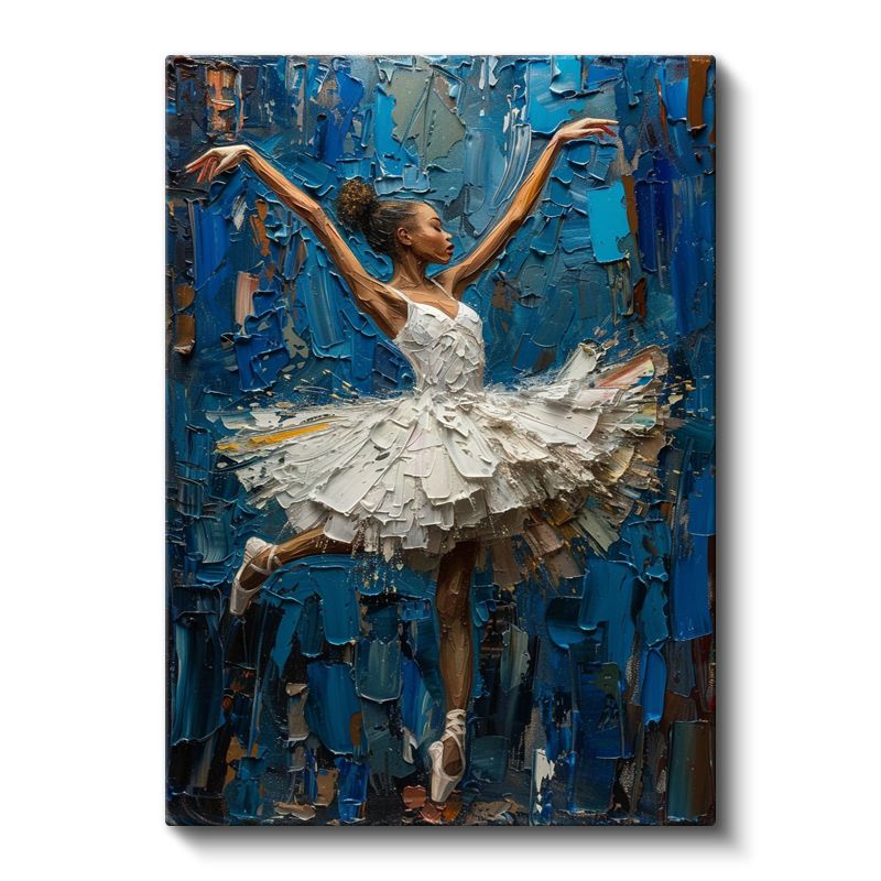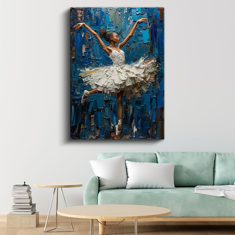 Zarif Balerin - Mavi Tonlarda Yağlı Boya Dans Kanvas Tablo