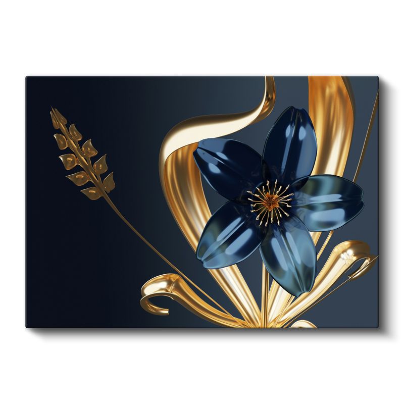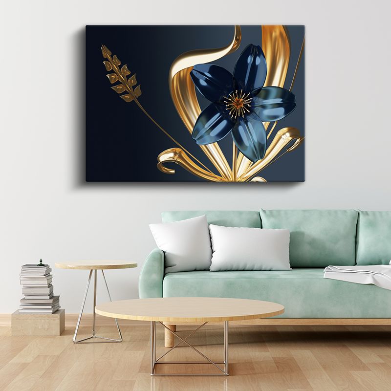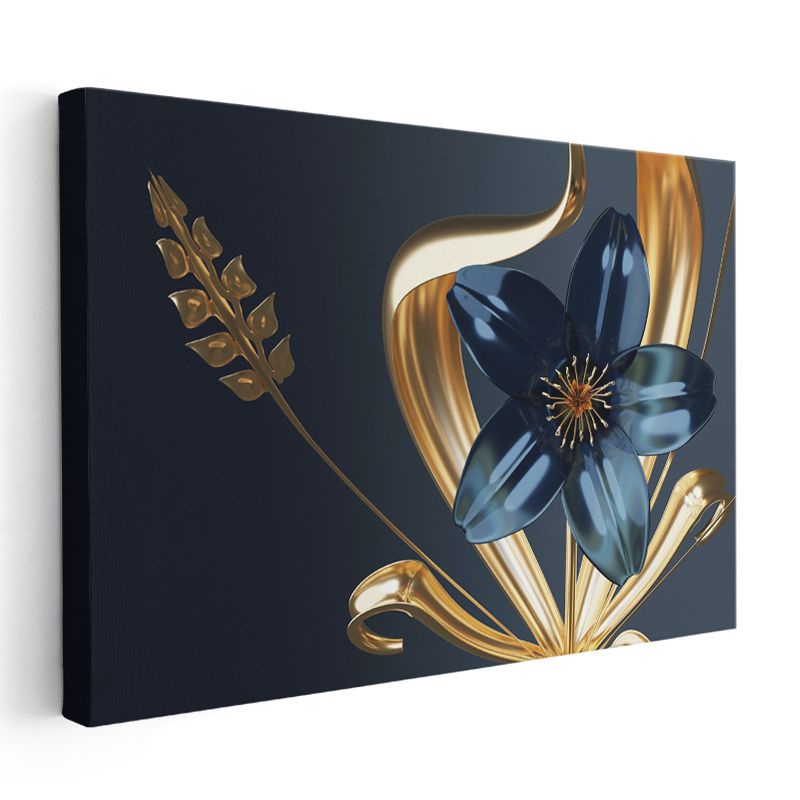 Zarif Çiçek - Altın ve Lacivert Kontrast Kanvas Tablo