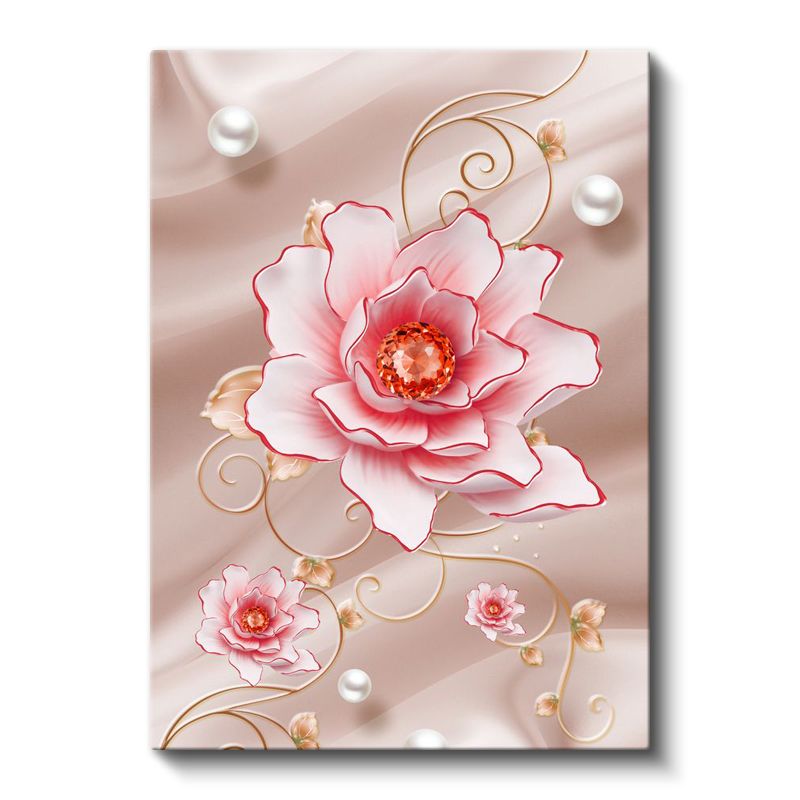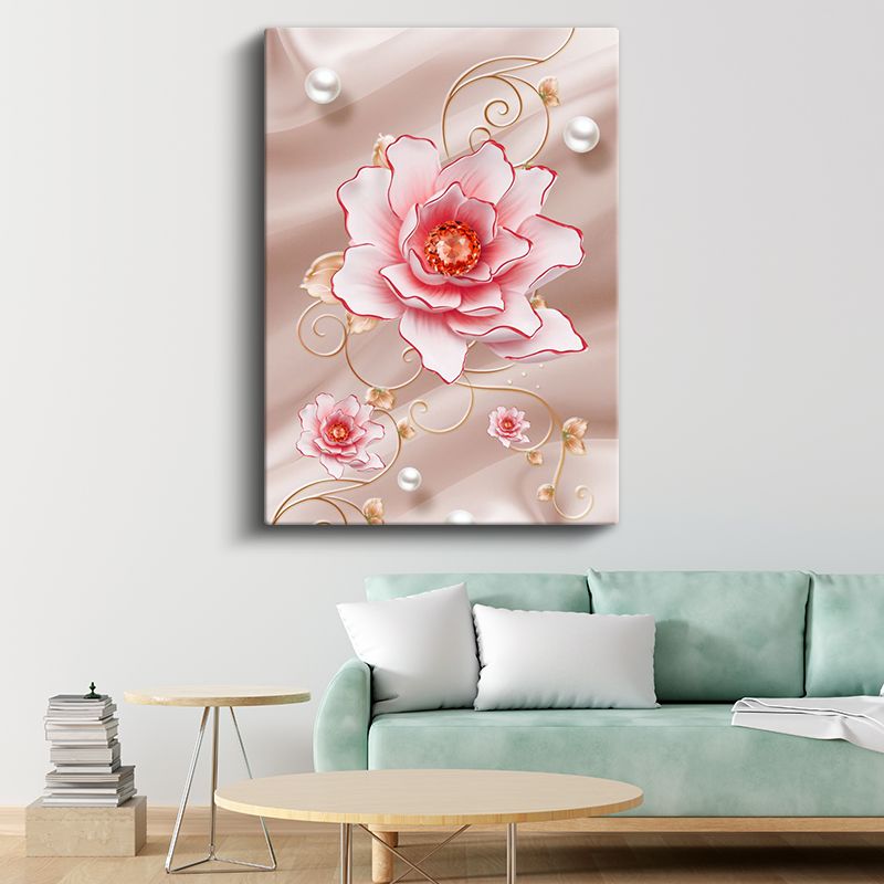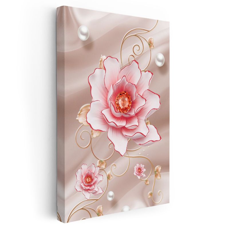 Zarif Çiçek İllüstrasyonu - İnci Detaylı Pembe Gül Kanvas Tablo