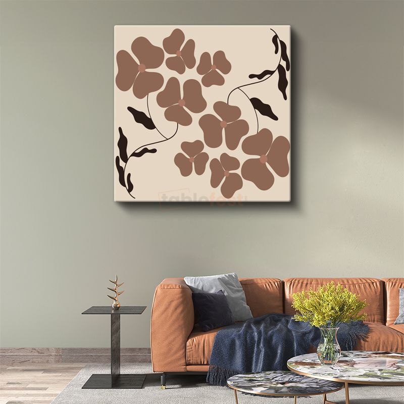 Zarif Çiçekler - Minimalist Botanik Desen Kanvas Tablo