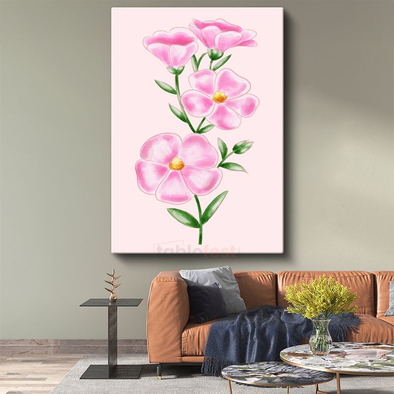 Zarif Çiçekler - Minimalist Pembe Flora Kanvas Tablo