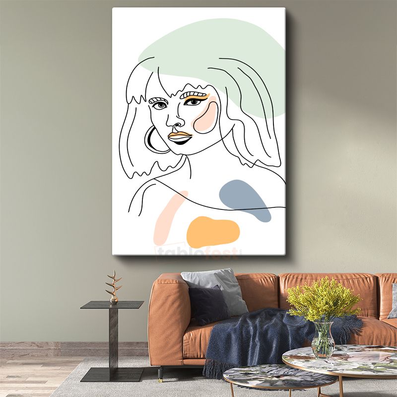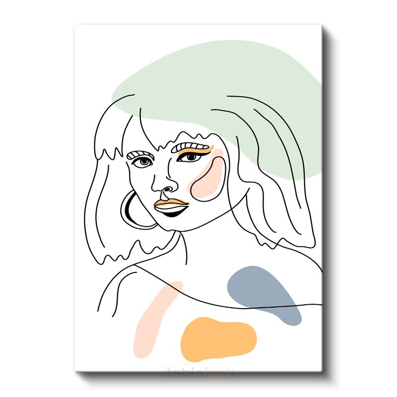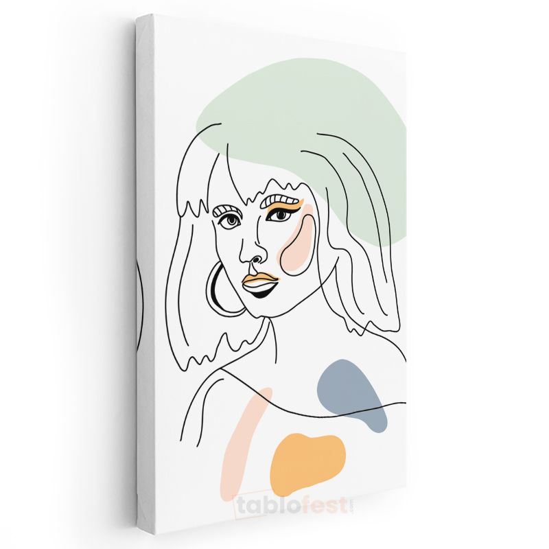 Zarif Çizgiler - Pastel Geometrik Şekillerle Kadın Portresi Kanvas Tablo